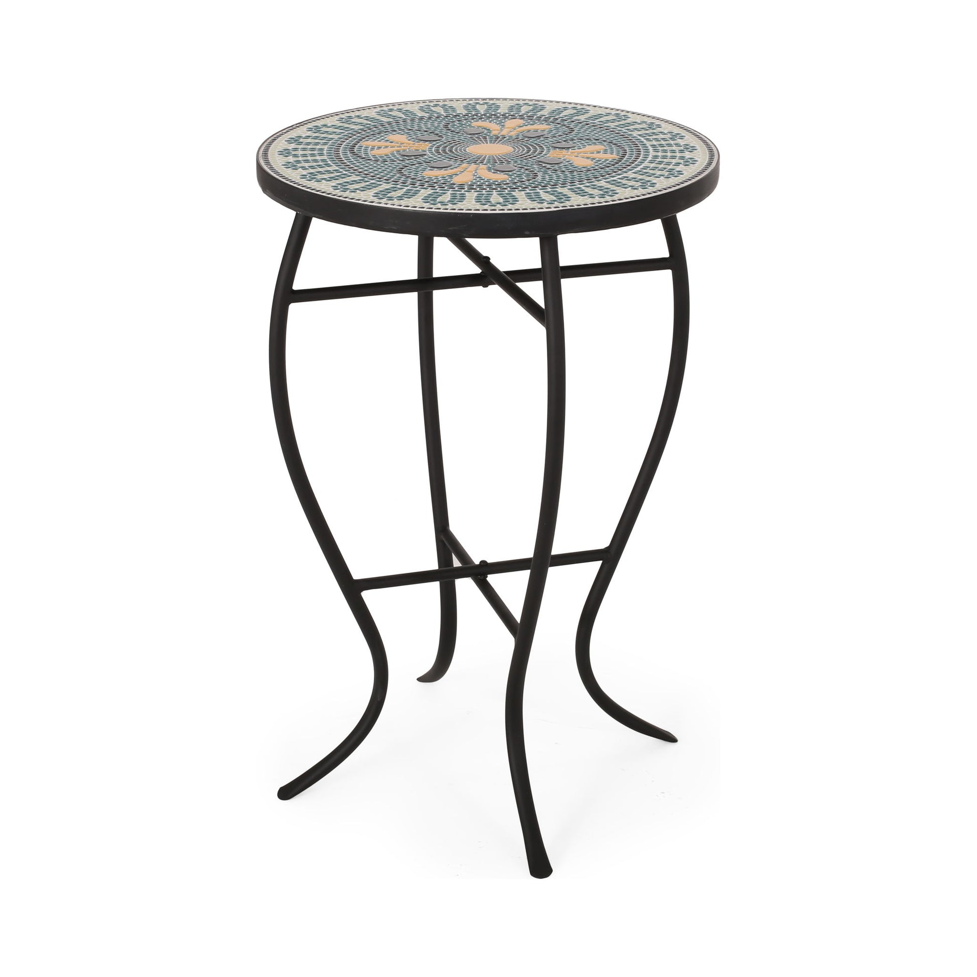 Outdoor Side Table With Tile Mosaic Table Top - Black