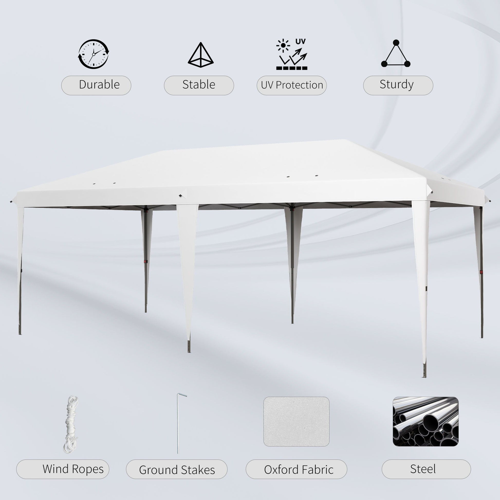 Outsunny - 10' x 19.2' Pop Up Canopy Tent, Heavy Duty Tent For Parties, Outdoor Instant Gazebo Sun Shade Shelter With Carry Bag For Catering, Events, Wedding, Backyard Bbq - White