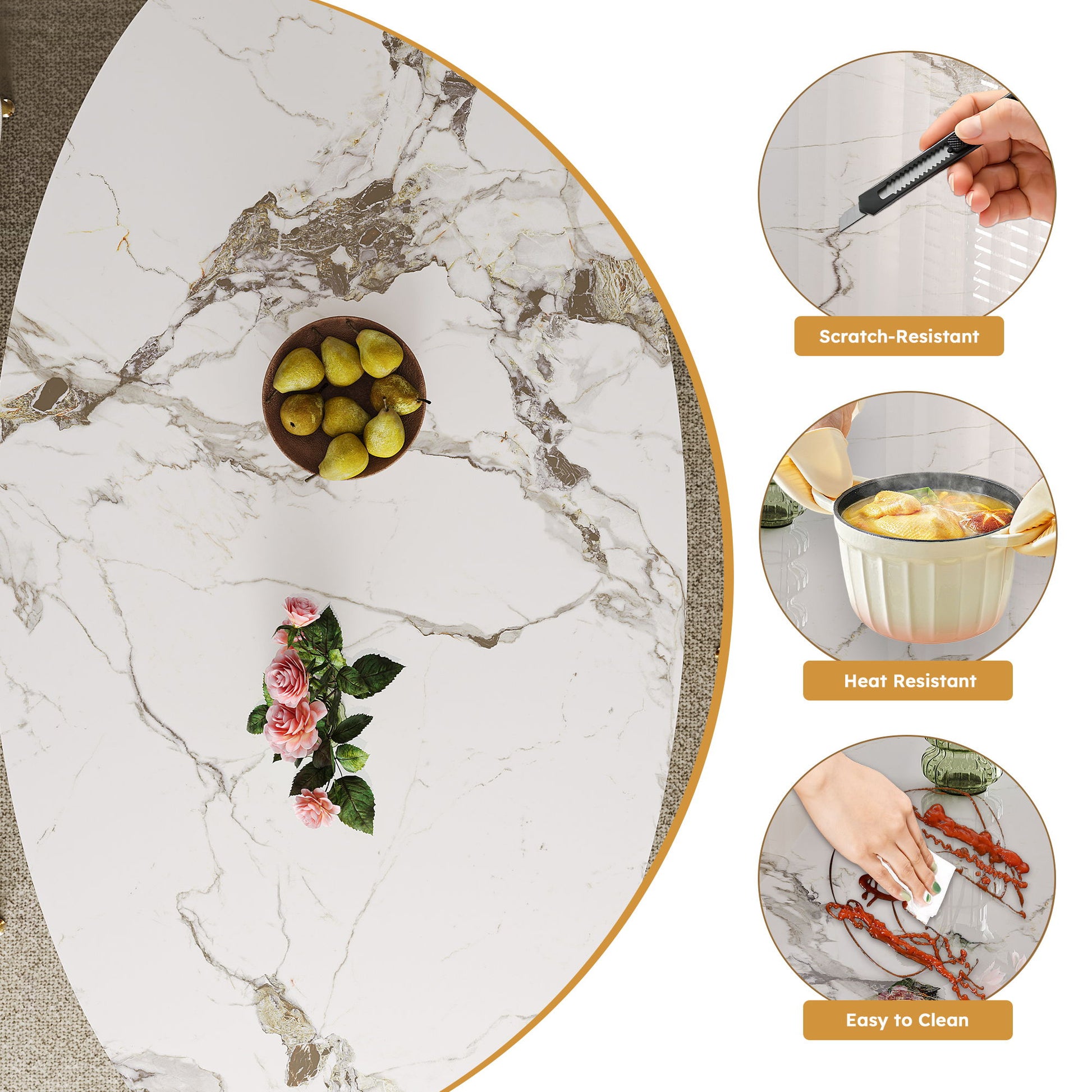 - Fashionable dining table: Oval shape with smooth, rounded edges enhances space perception and adds elegance, suitable for family use.