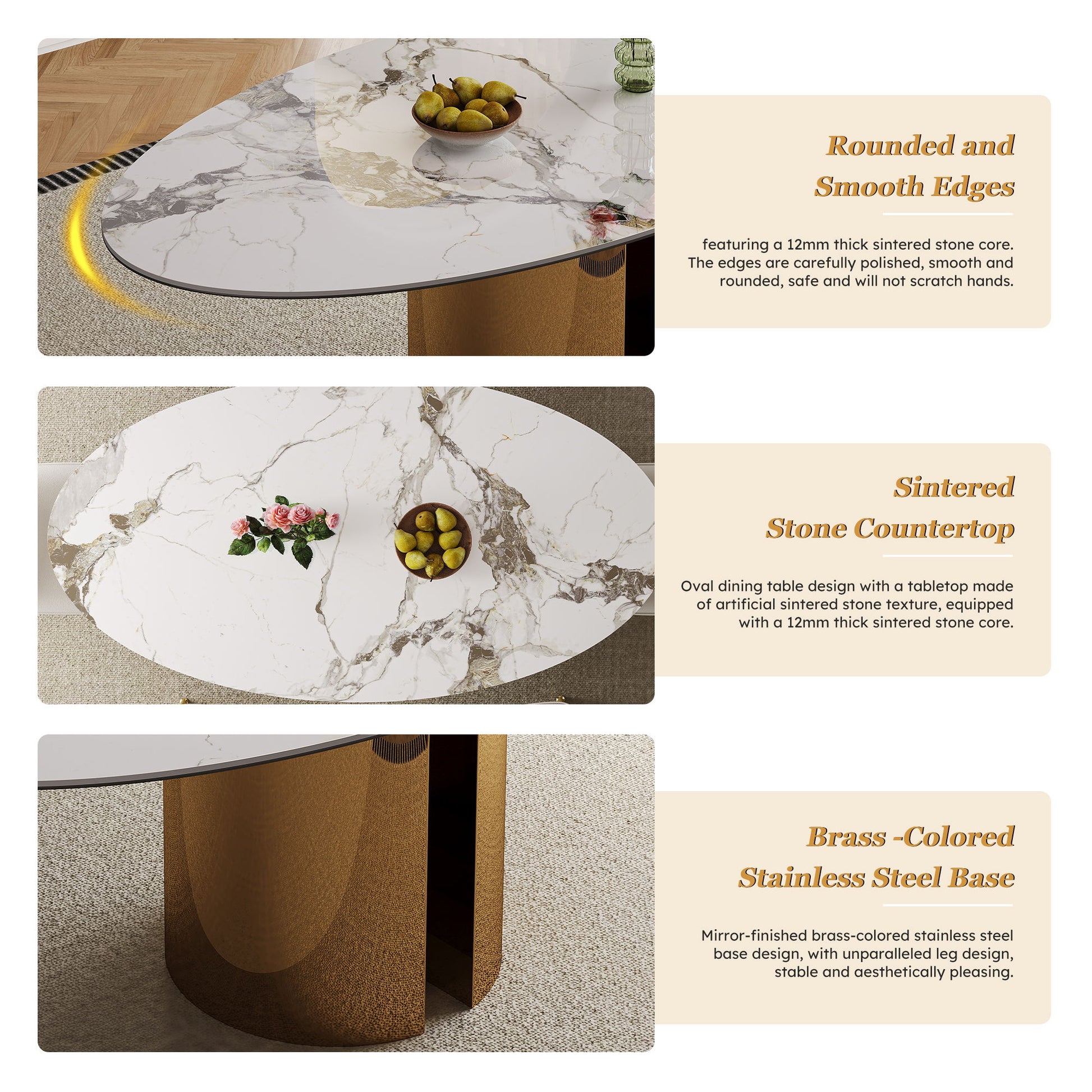 Oval Dining Table With Stainless Steel Base, Sturdy And Stable Design For Kitchen, Dining Room - Brown / White