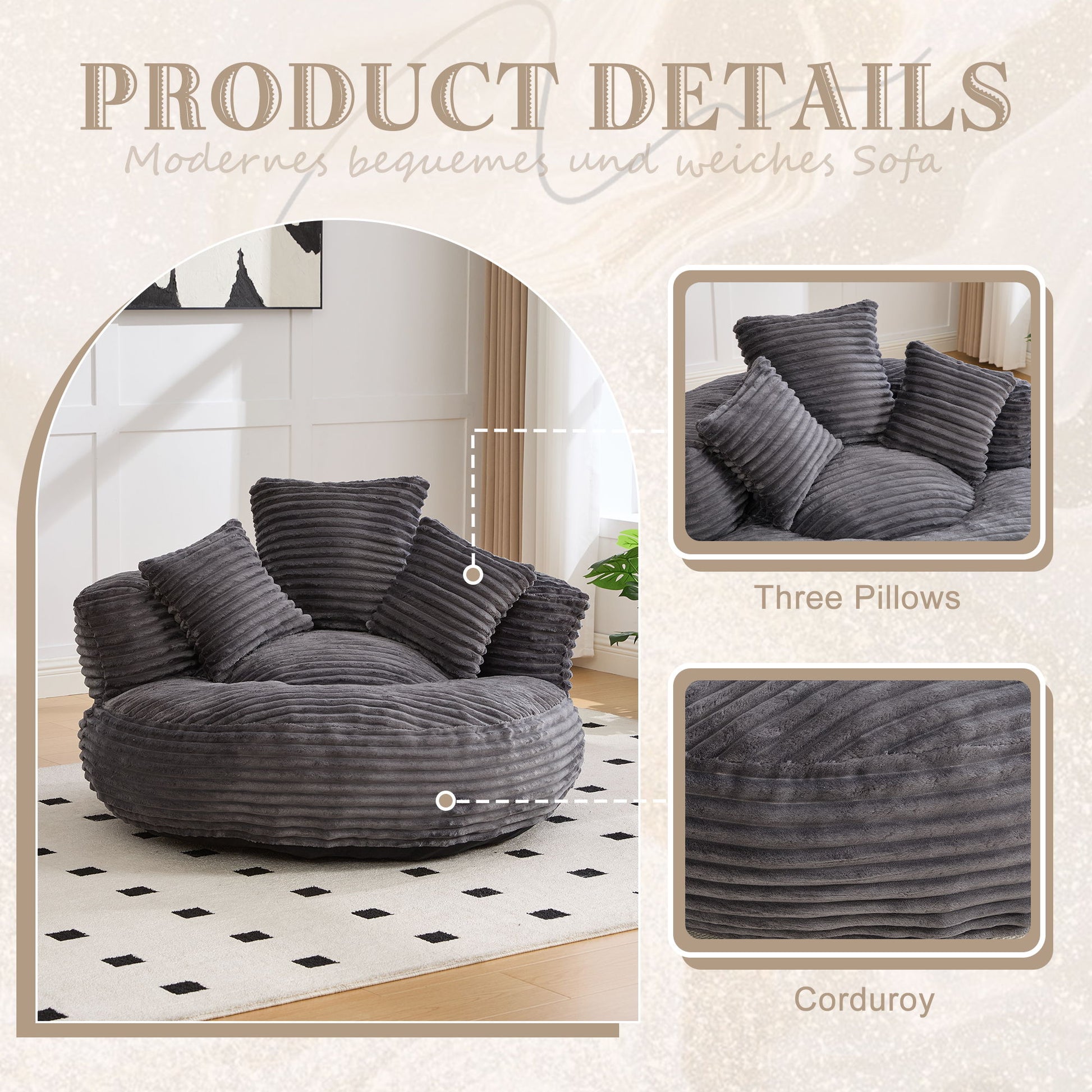 Oversized Bean Bag Chair With 3 Pillows & Armrest - Dark Gray
