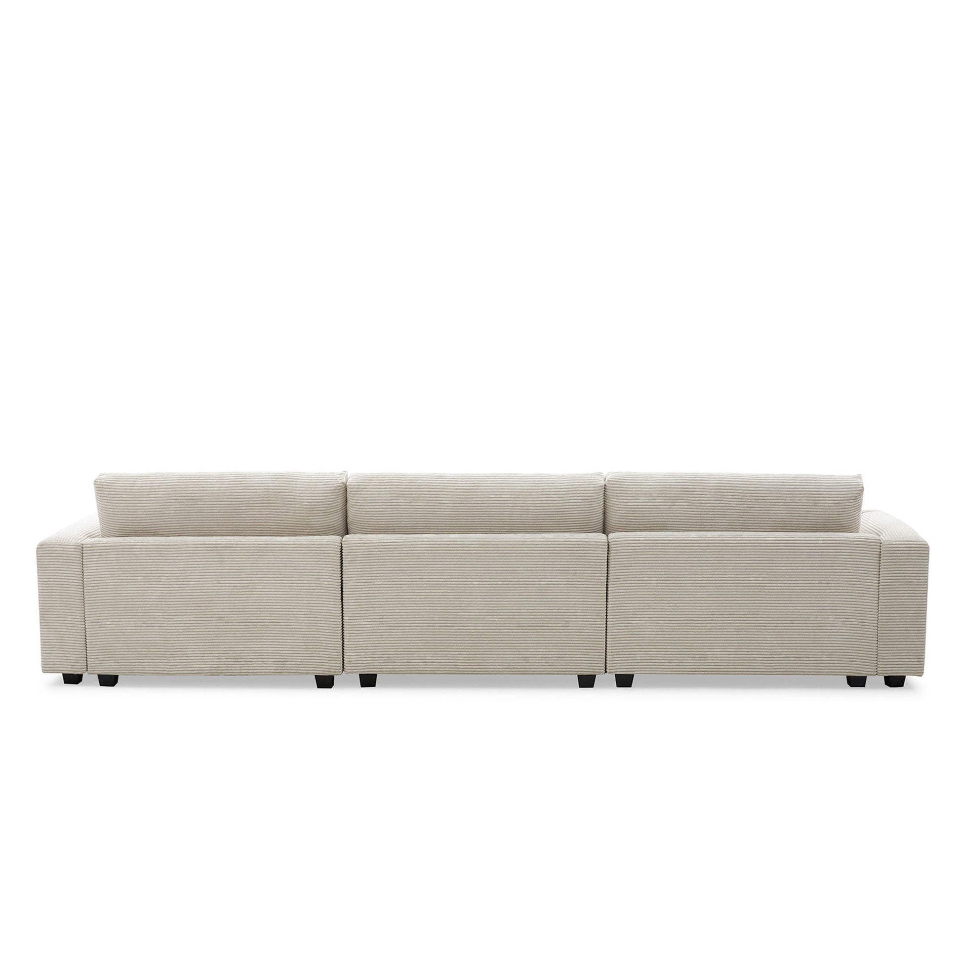 Oversized Corduroy Sectional Sofa, L Shaped Cloud Couch With USB Charging Port, Cup Holder, Deep Seat Sofa Bed With Chaise, Comfy Indoor Furniture - Beige