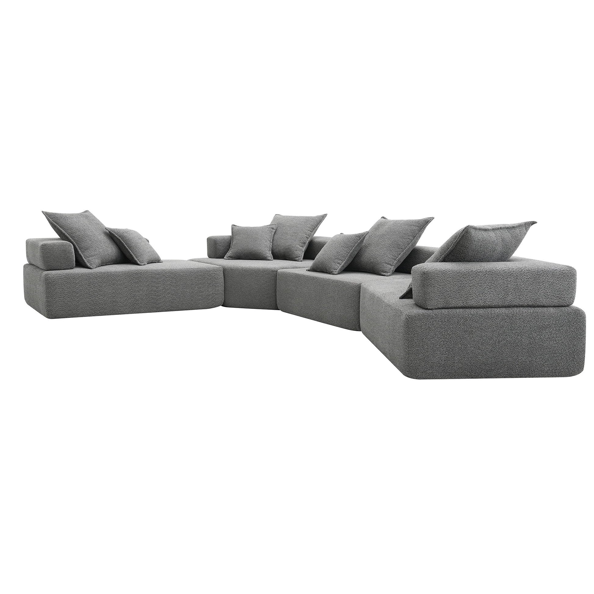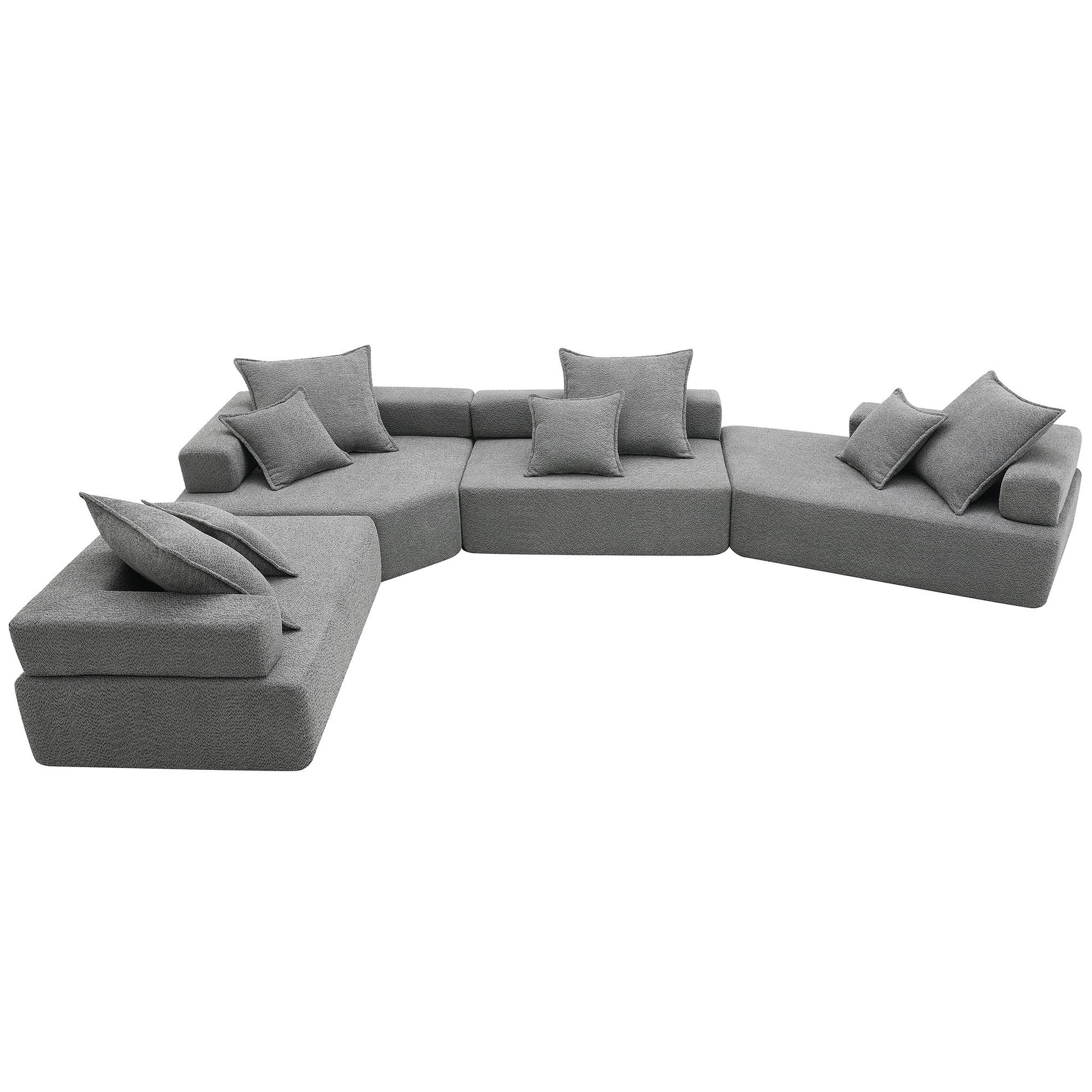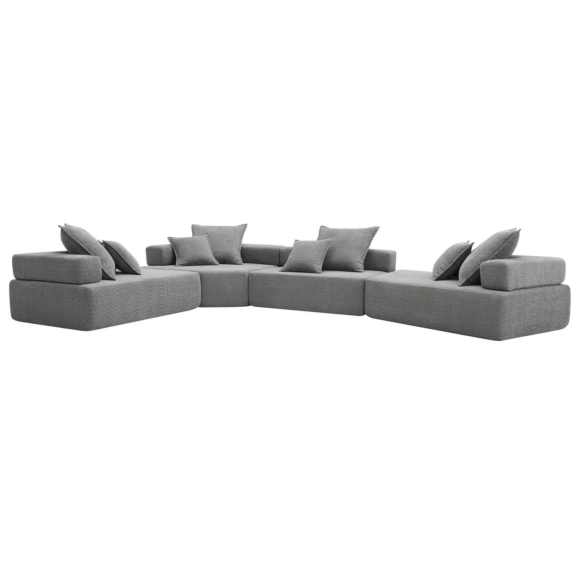 Oversized Modular U Shaped Sectional Sofa, Luxury Boucle Floor Couch Set, Convertible Sleeper Couch, Spacious Foam-Filled Sofa Bed, 4 Piece Free Combination - Gray