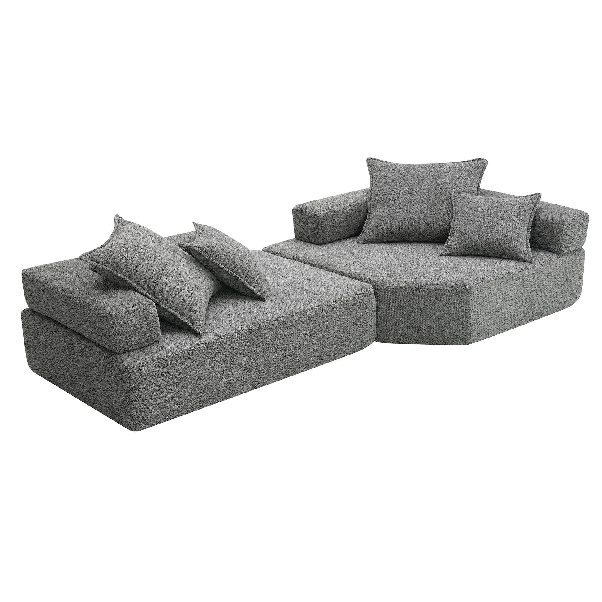 Oversized Modular Sectional Sofa, Luxury Boucle Floor Couch Set, Convertible Sleeper Couch, Spacious Foam-Filled Sofa Bed, 2 Piece Free Combination - Gray