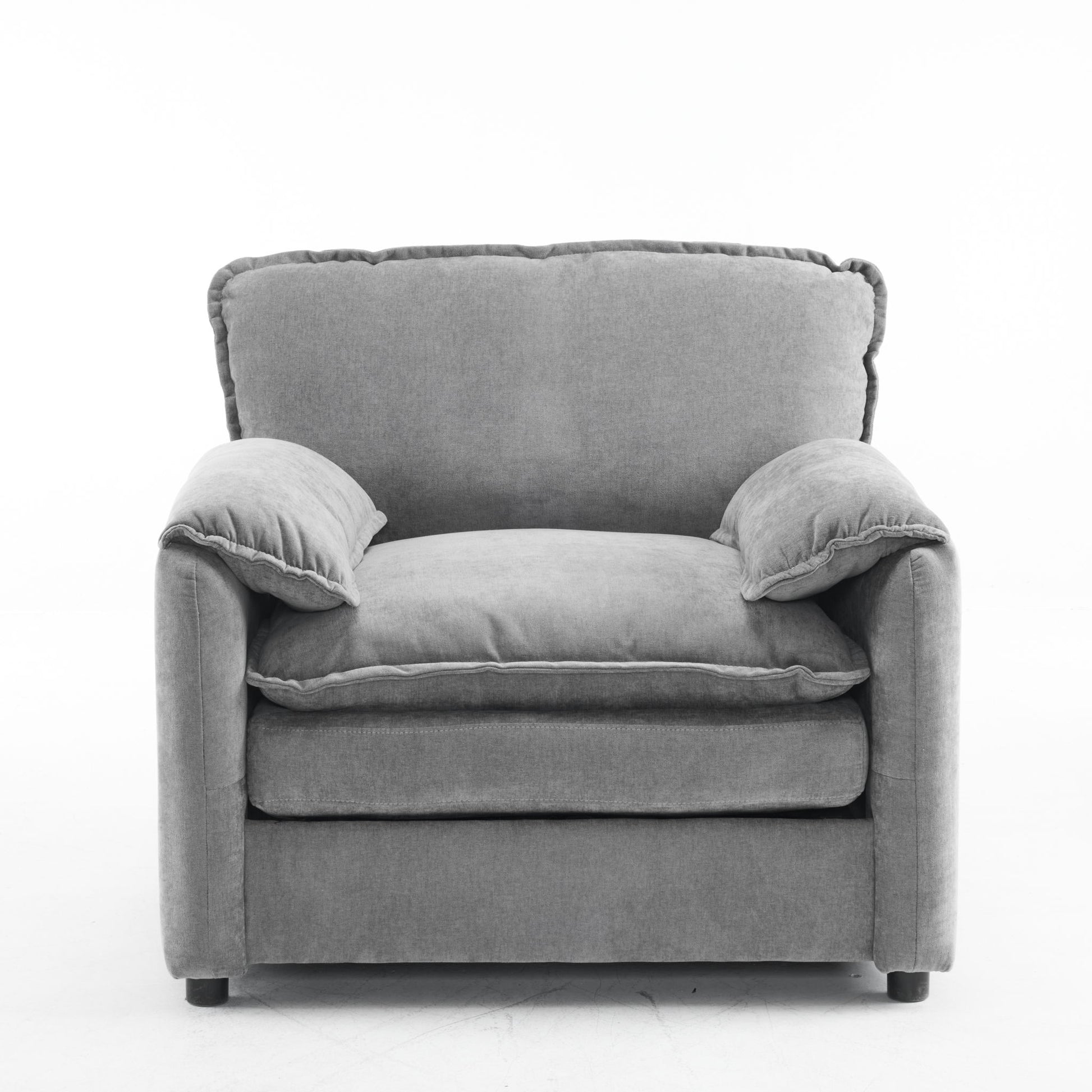 Oversized Reading Armchair With Thick Cushions, High Back Support - Gray