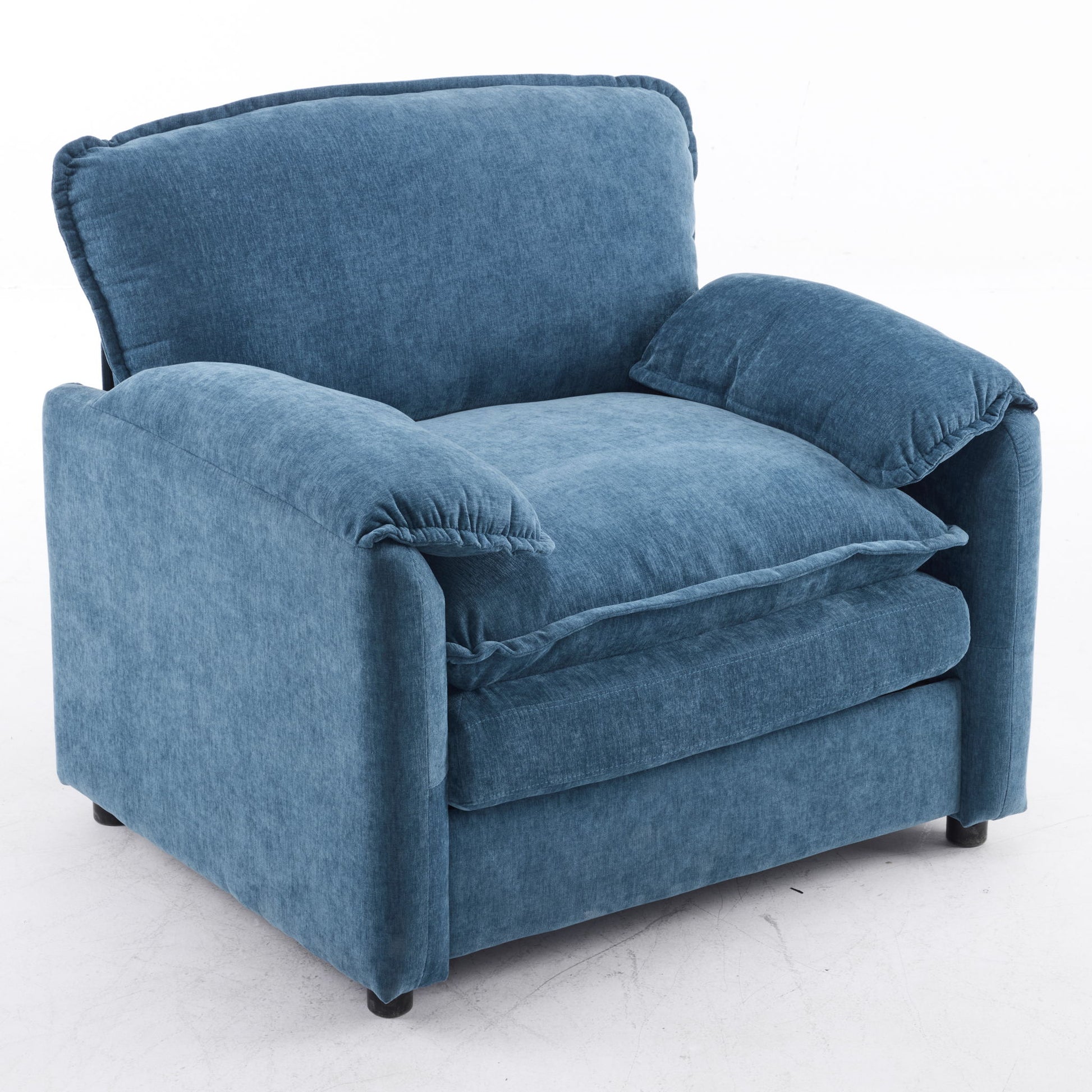 Oversized Reading Armchair With Thick Cushions, High Back Support - Blue