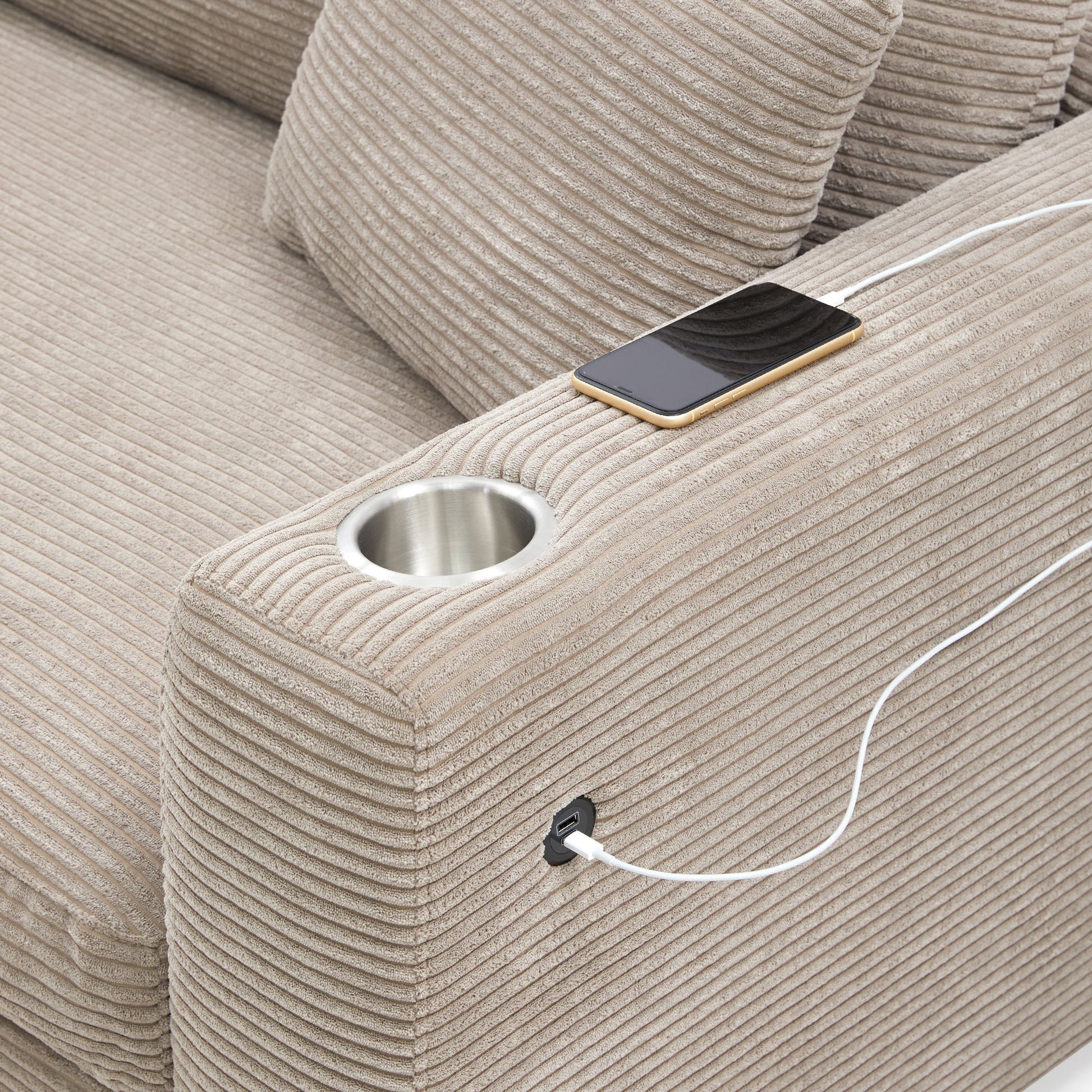 Oversized Sectional L Shaped Cloud Couch With USB Charging Port Cup Holder Deep And Wide Seat Sofa With Chaise Comfy - Beige