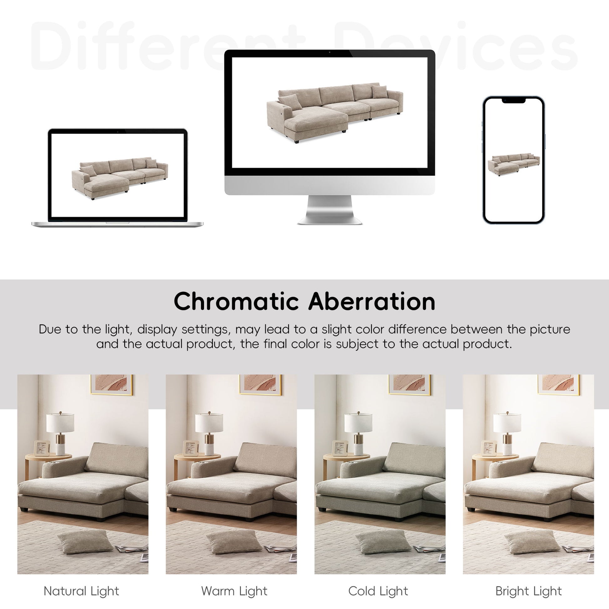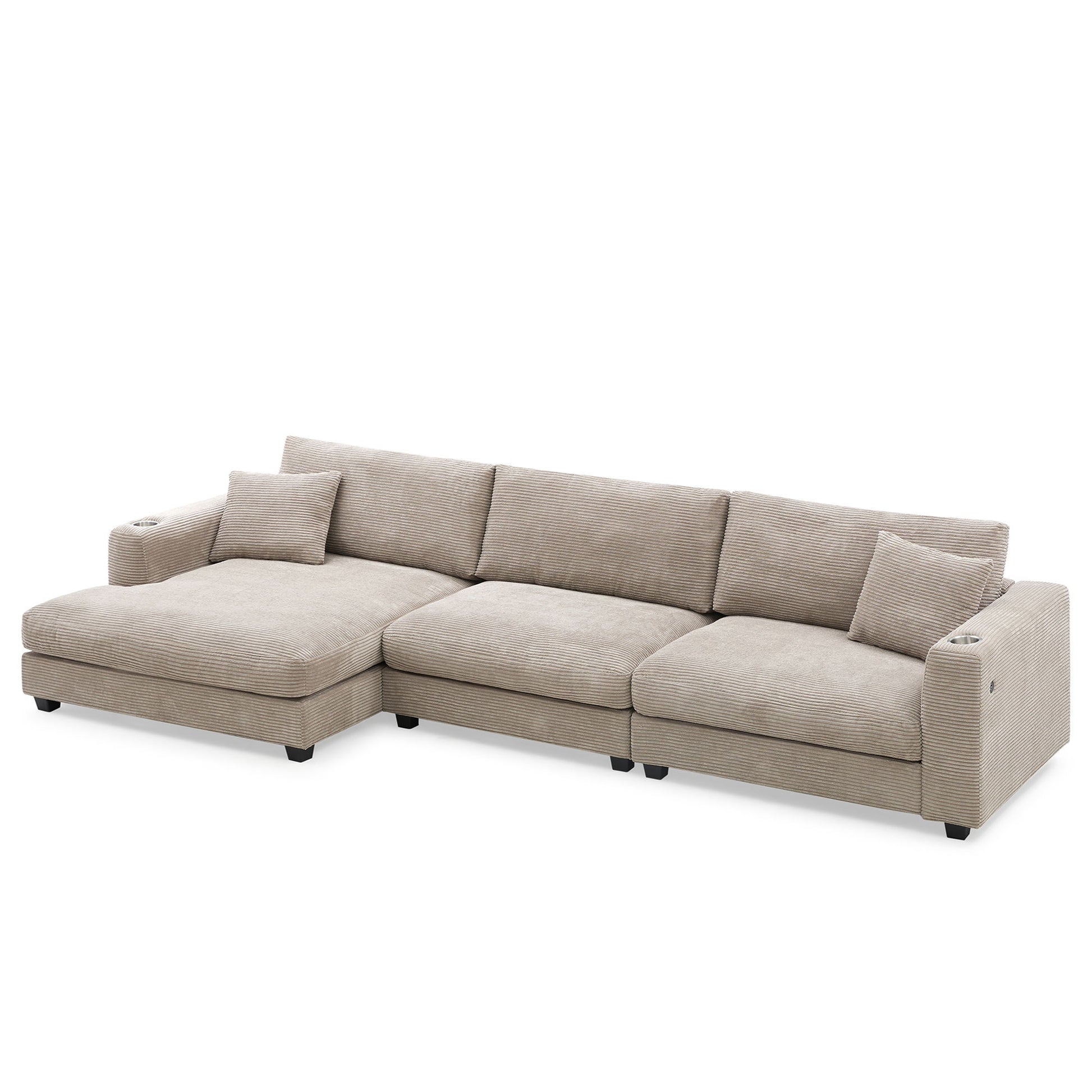 Oversized Sectional L Shaped Cloud Couch With USB Charging Port Cup Holder Deep And Wide Seat Sofa With Chaise Comfy - Khaki