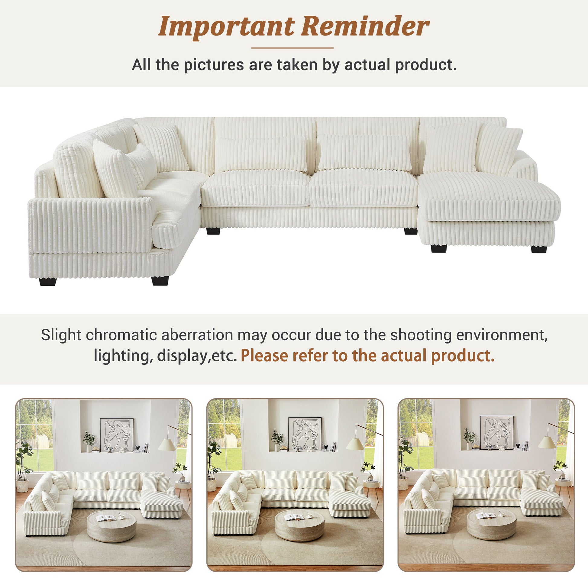 Oversized Sectional Sofa U - Shaped Sofa Couch Modern Sofa Upholstered In Soft Corduroy With A Chaise Lounge For Living Room - Beige