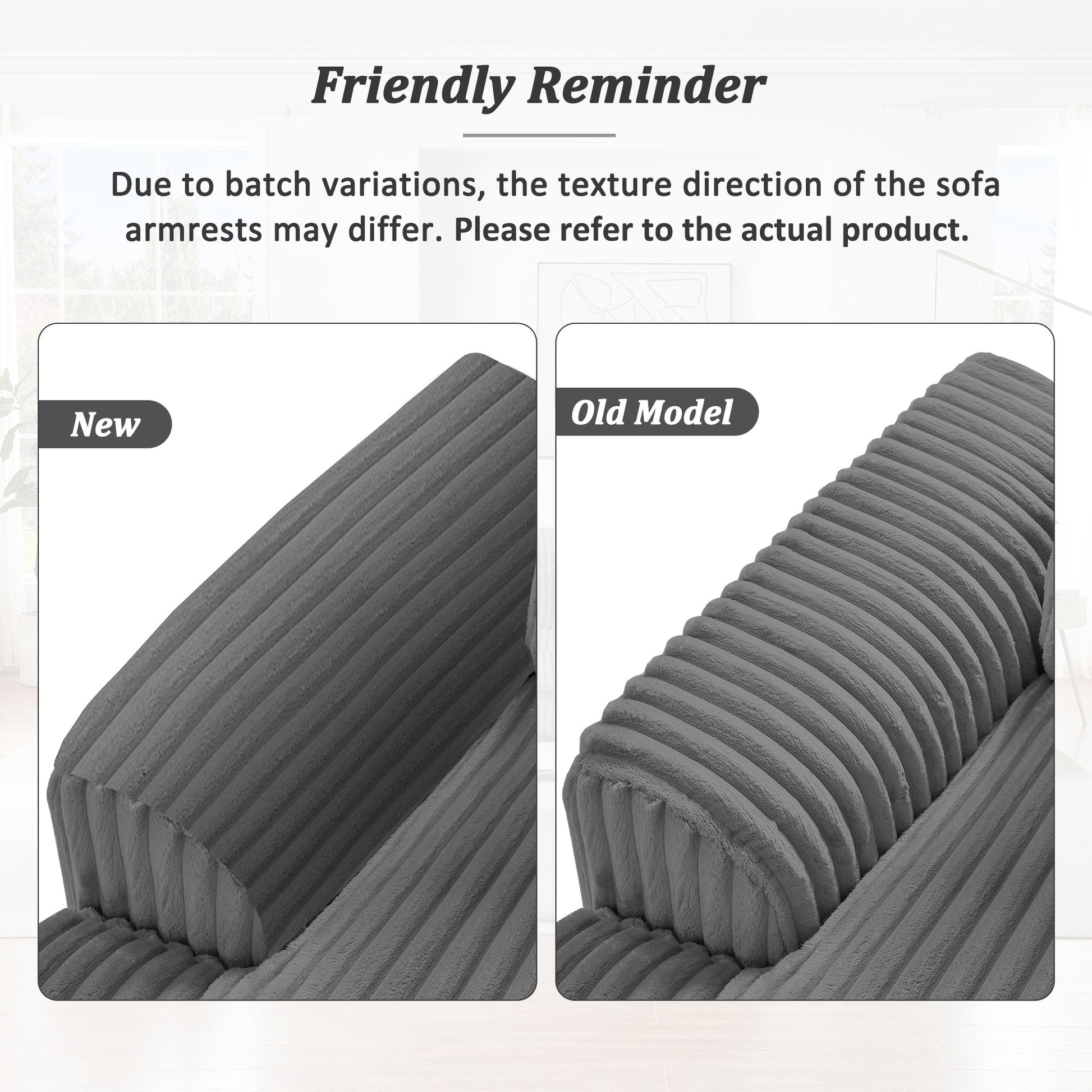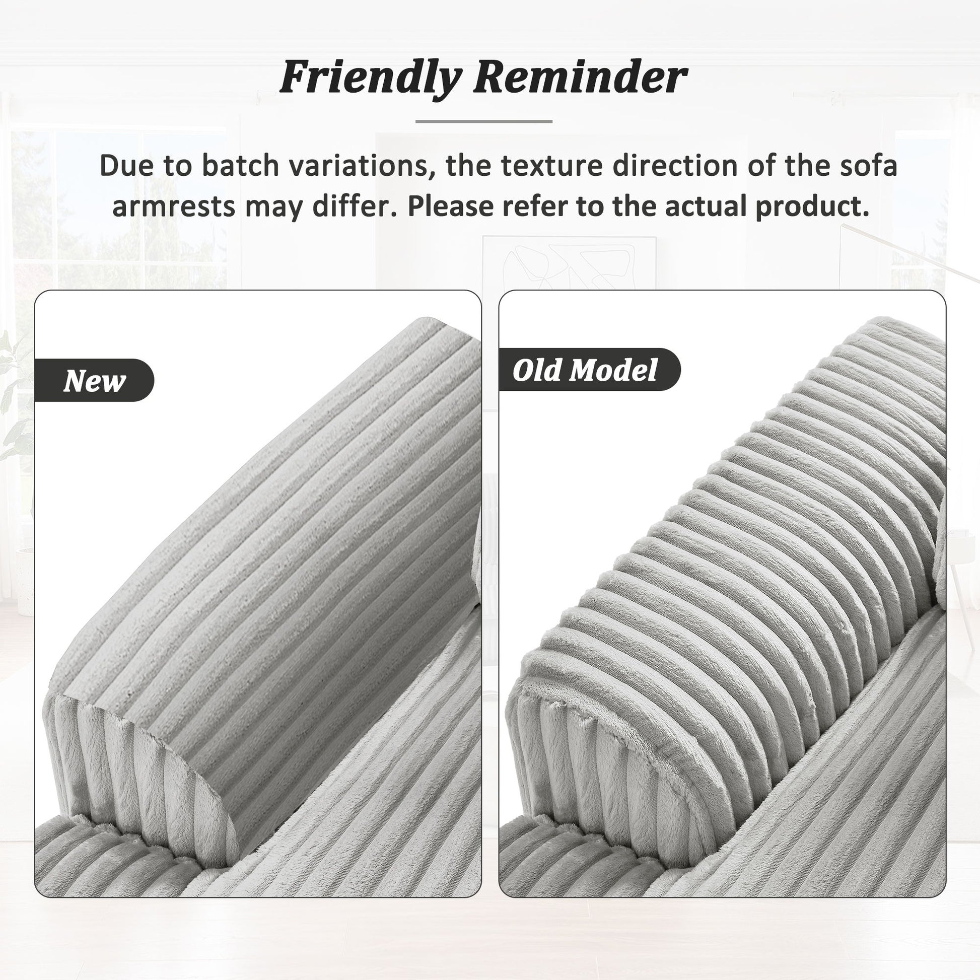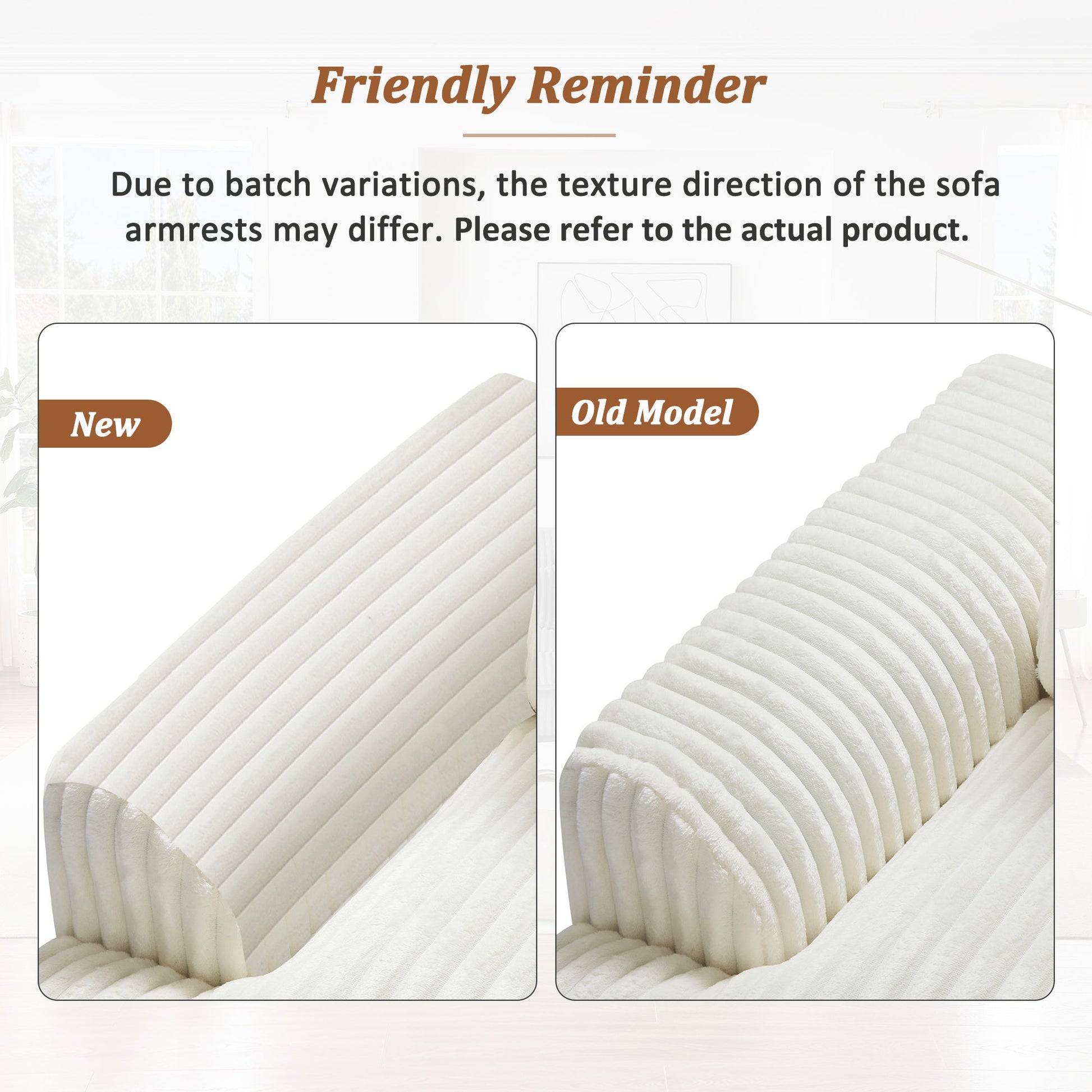 - Luxurious Fabric - Upholstered in ultra-soft corduroy fabric, the sofa provides a plush and inviting feel. This durable material maintains its elegant appearance and adds visual interest, complementing various decor styles.
