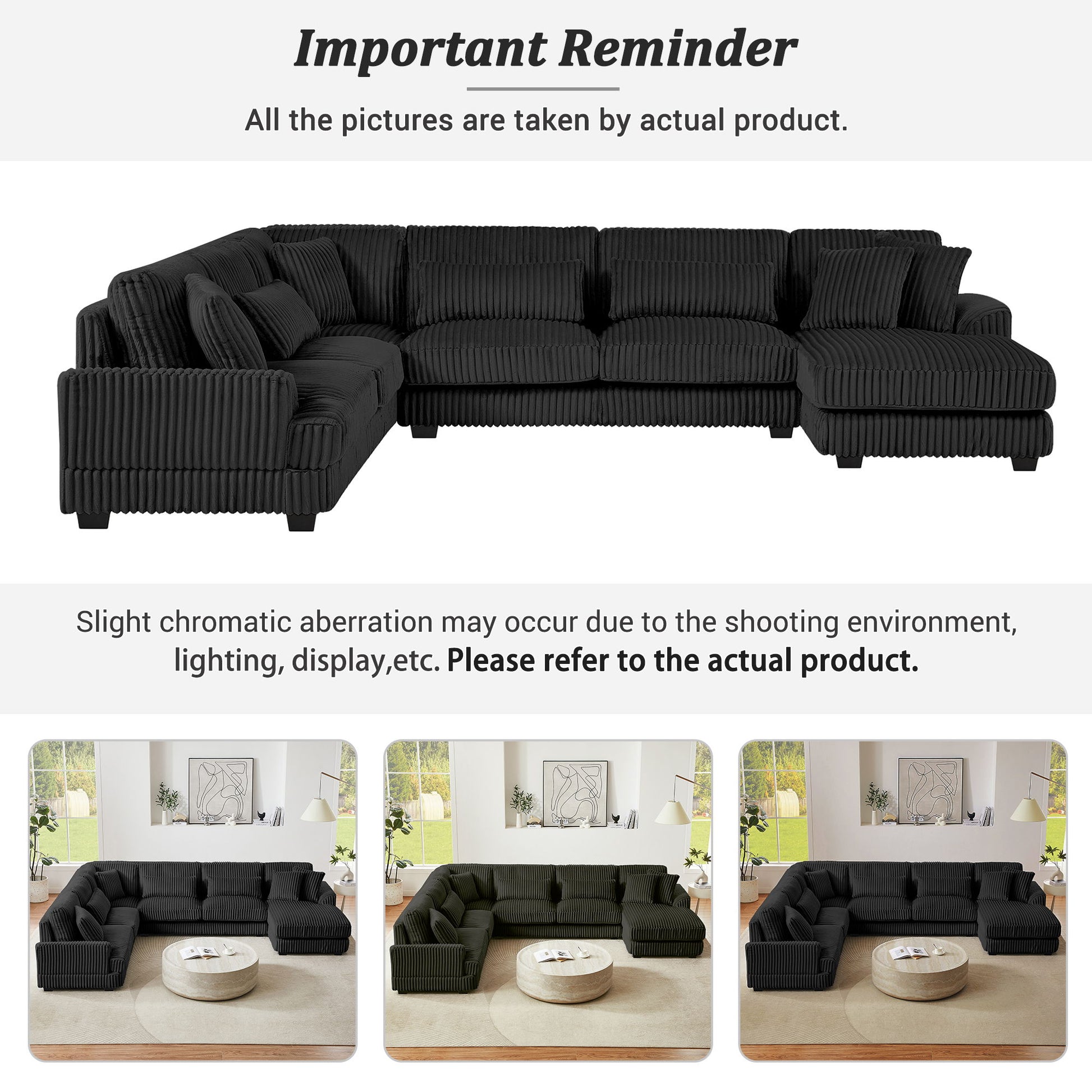 Oversized Sectional Sofa U - Shaped Sofa Couch Modern Sofa Upholstered In Soft Corduroy With A Chaise Lounge For Living Room