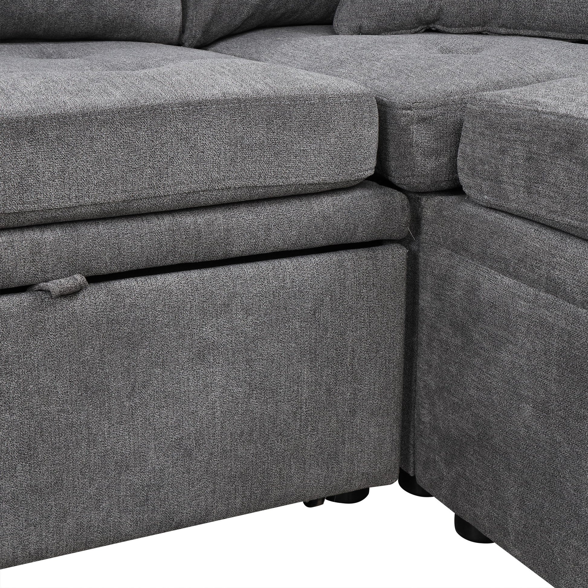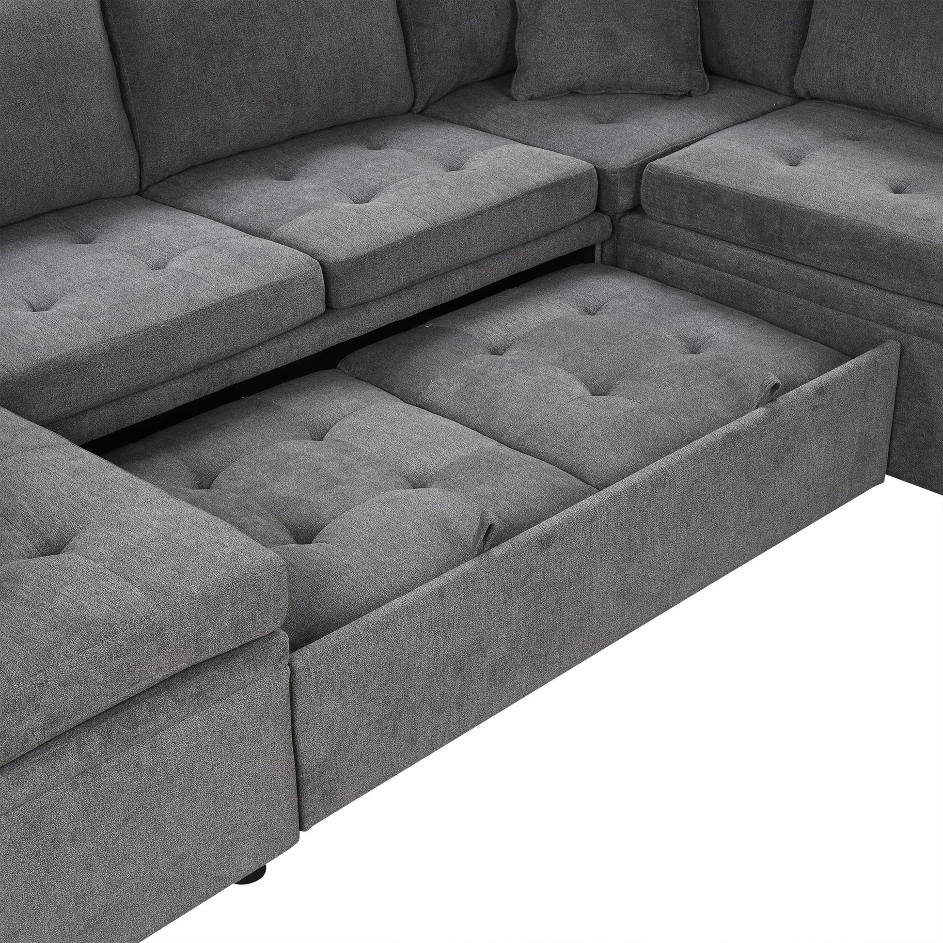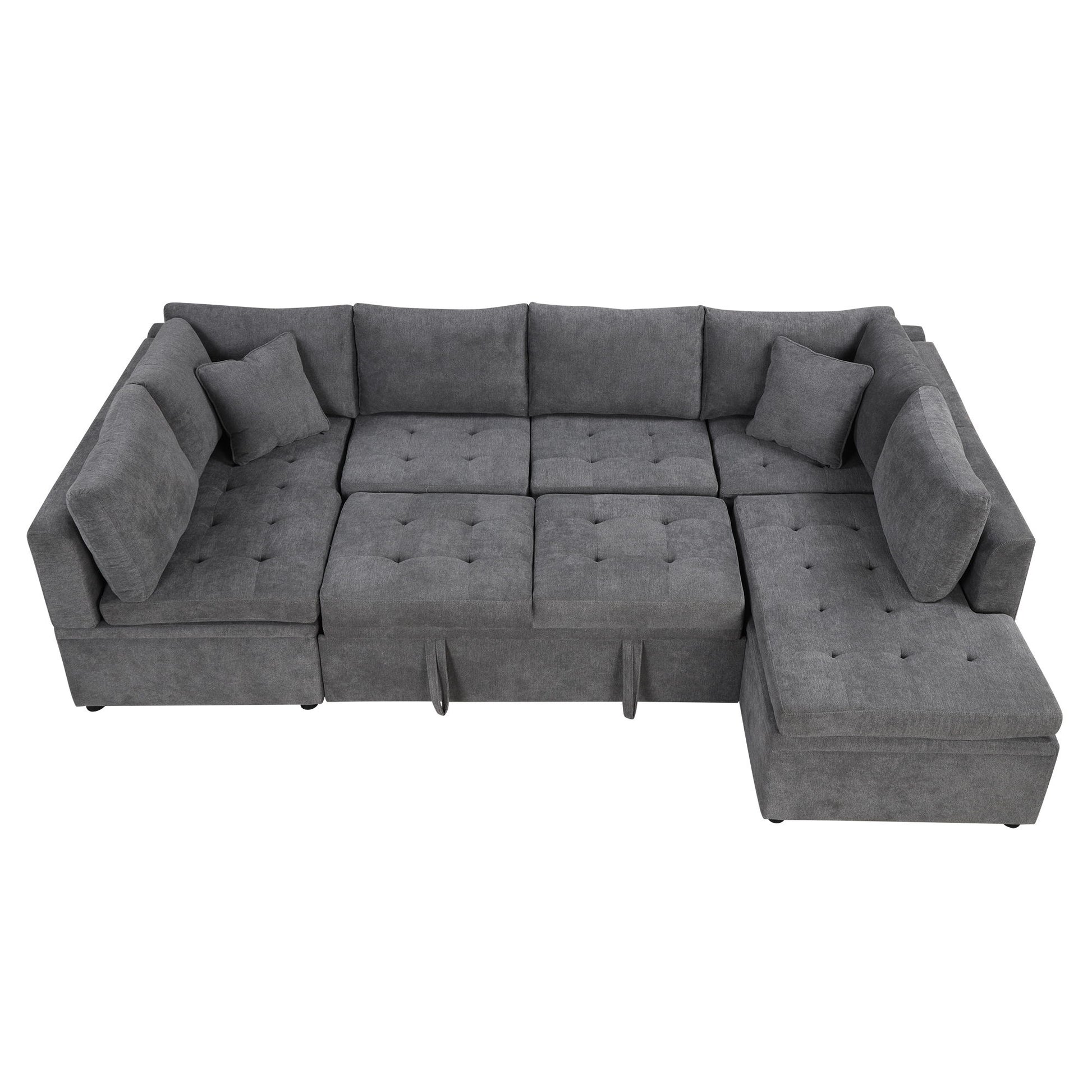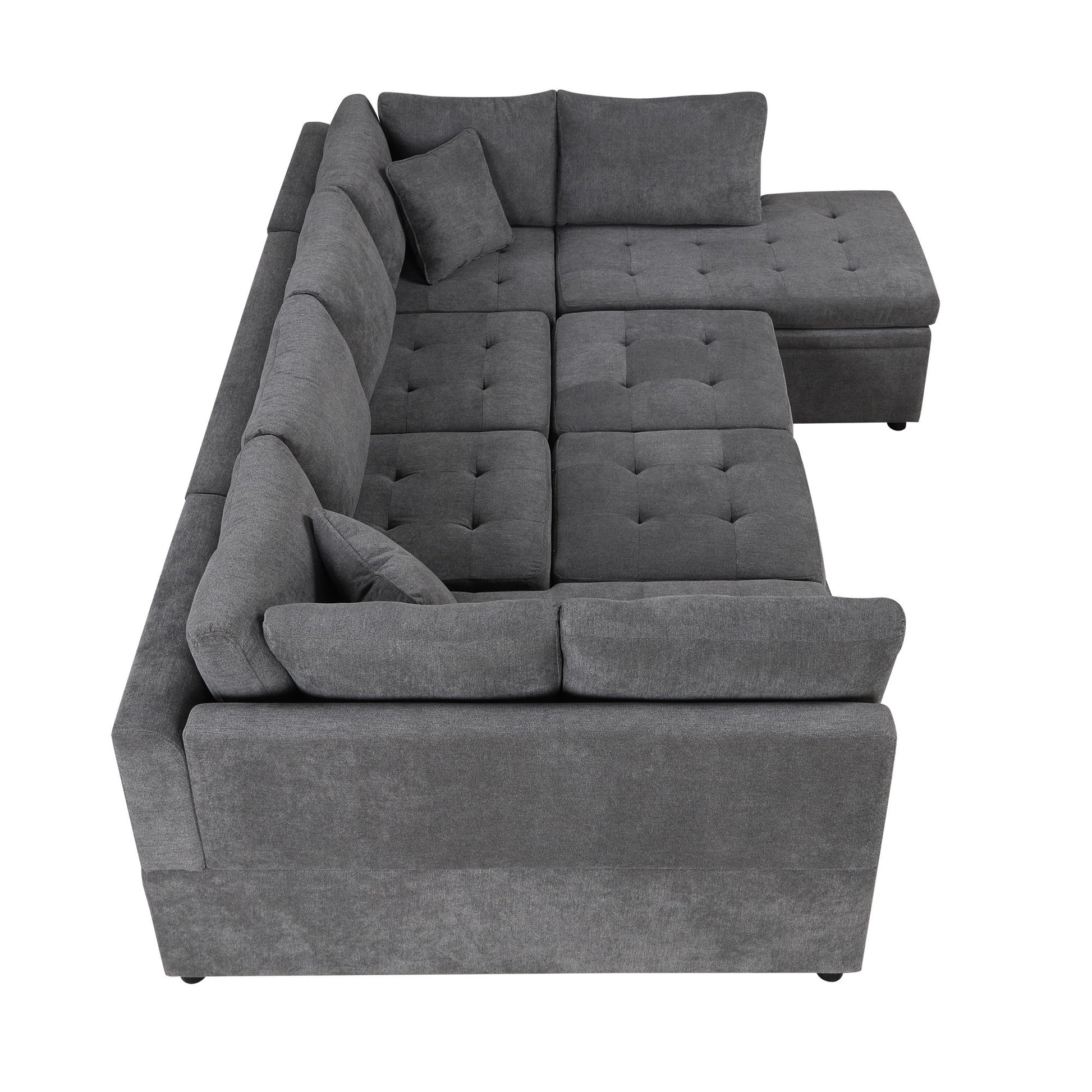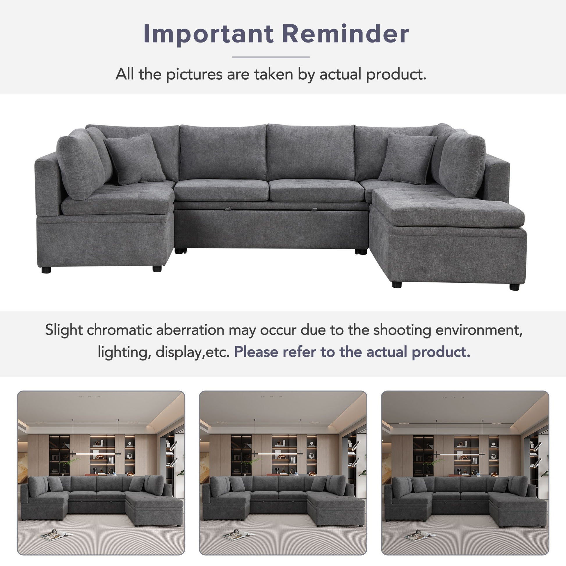 Oversized Sectional Sofa U-Shaped Sofa Couch Pull-Out Sofa Bed With Two Throw Pillows For Living Room - Gray