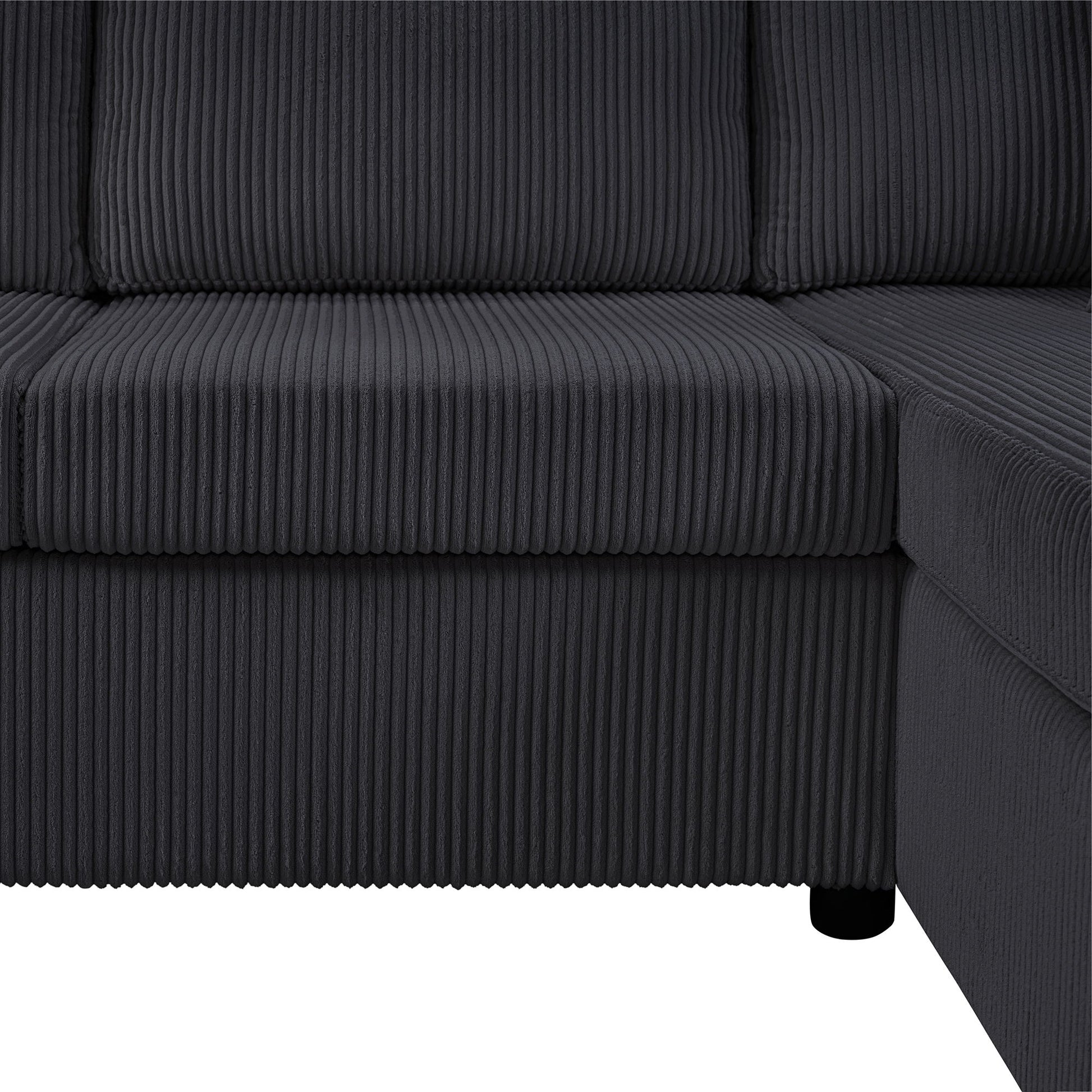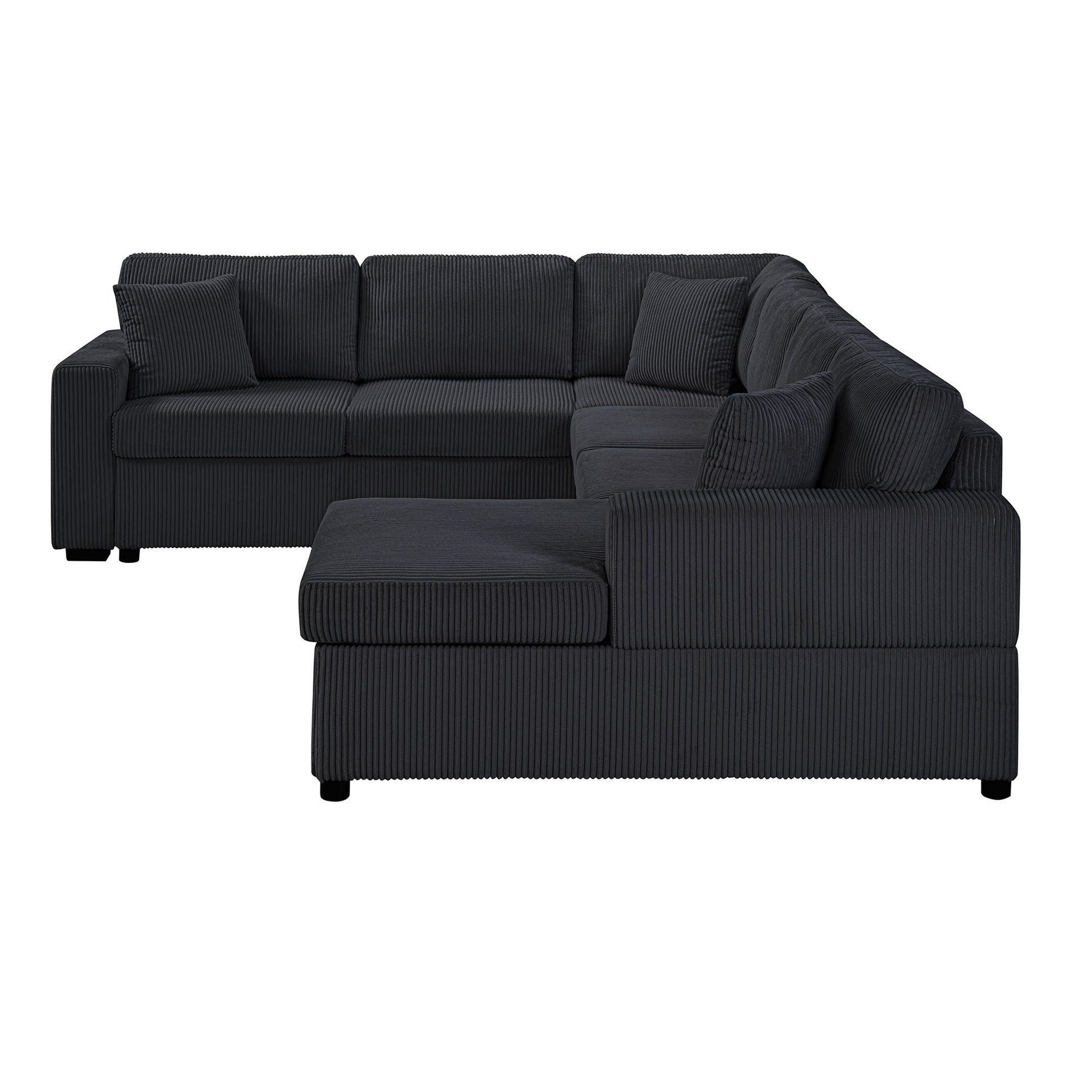 Oversized Sectional Sofa U Shaped Sofa With Chaise Lounge And 3 Soft Throw Pillows Corduroy Fabric - Black