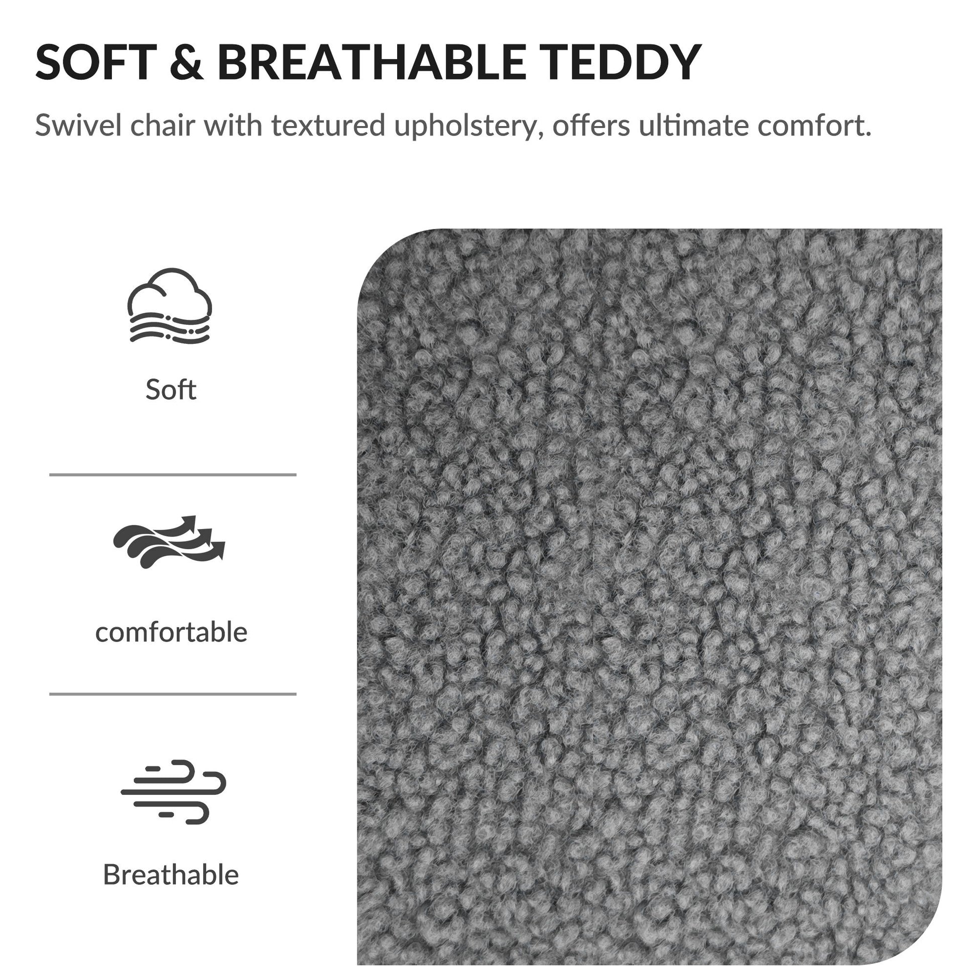 - Luxurious Comfort: The chair is upholstered in soft, stain-resistant teddy fabric, featuring plump cushions and high-density sponge padding for a plush and comfortable seating experience.