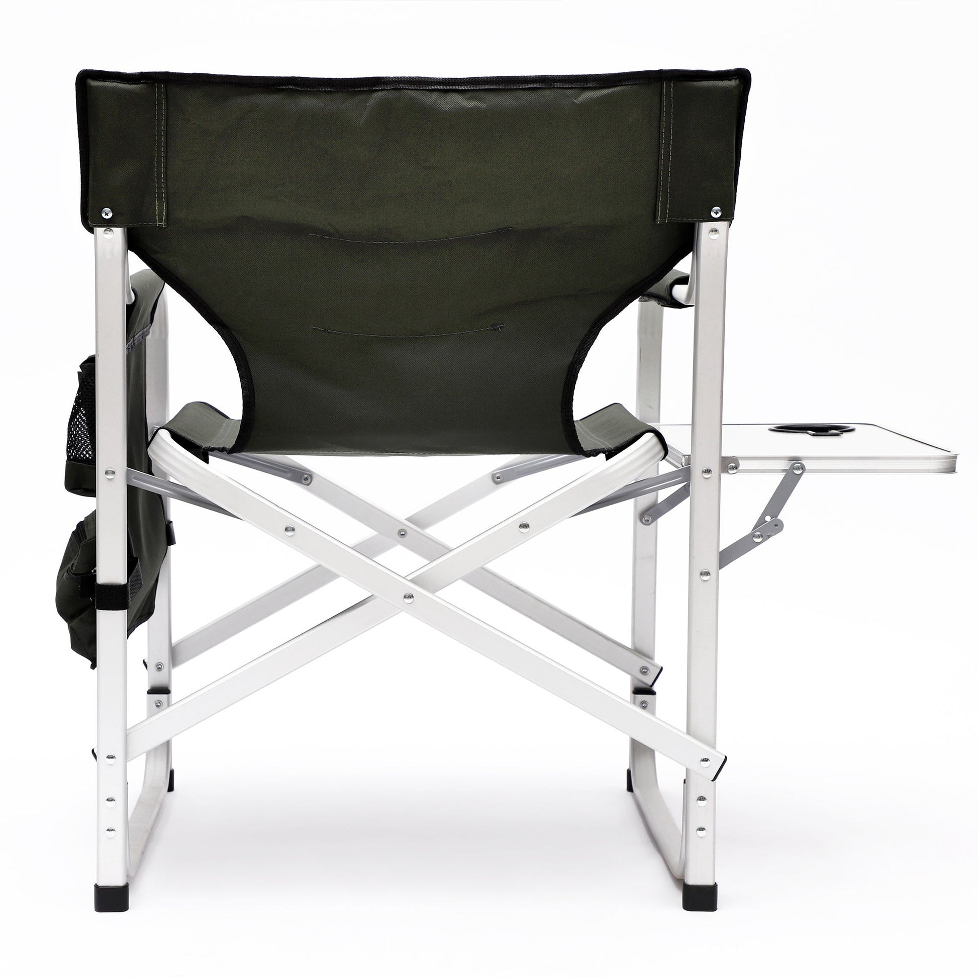 Padded Folding Outdoor Chair With Side Table And Storage Pockets, Lightweight Oversized Directors Chair For Indoor, Outdoor Camping, Picnics And Fishing - Green