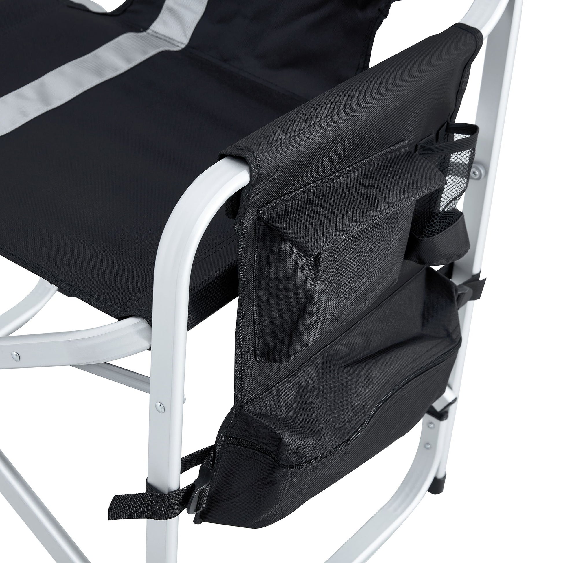 Padded Folding Outdoor Chair With Side Table And Storage Pockets, Lightweight Oversized Directors Chair For Indoor, Outdoor Camping, Picnics And Fishing - Black / Gray