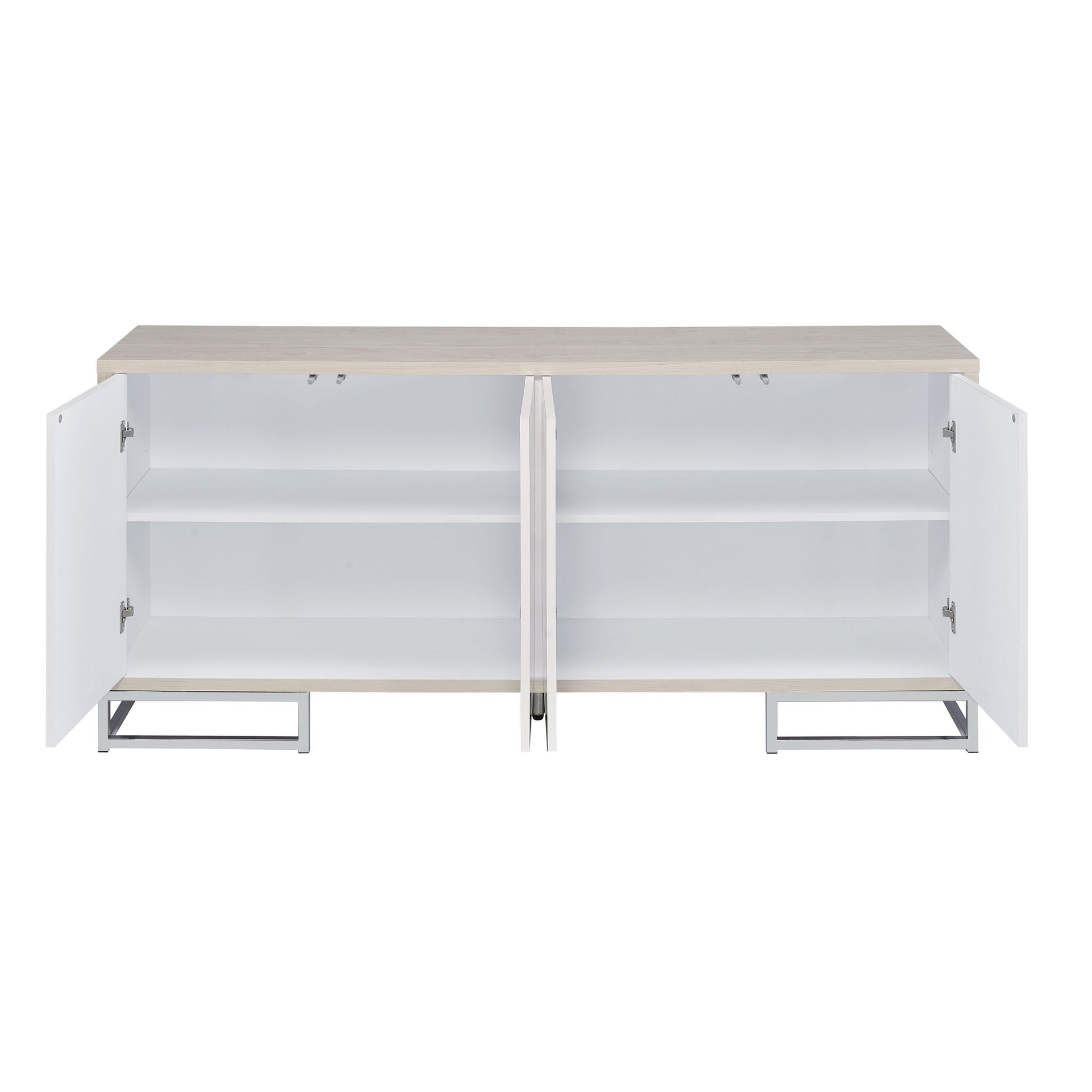 - Versatile Design: This elegant console cabinet is offered in two distinct color styles: White Marble Paint with Oak & Champagne accents, and White Marble Paint with a sleek Chrome Finish, making it adaptable to various interior designs.