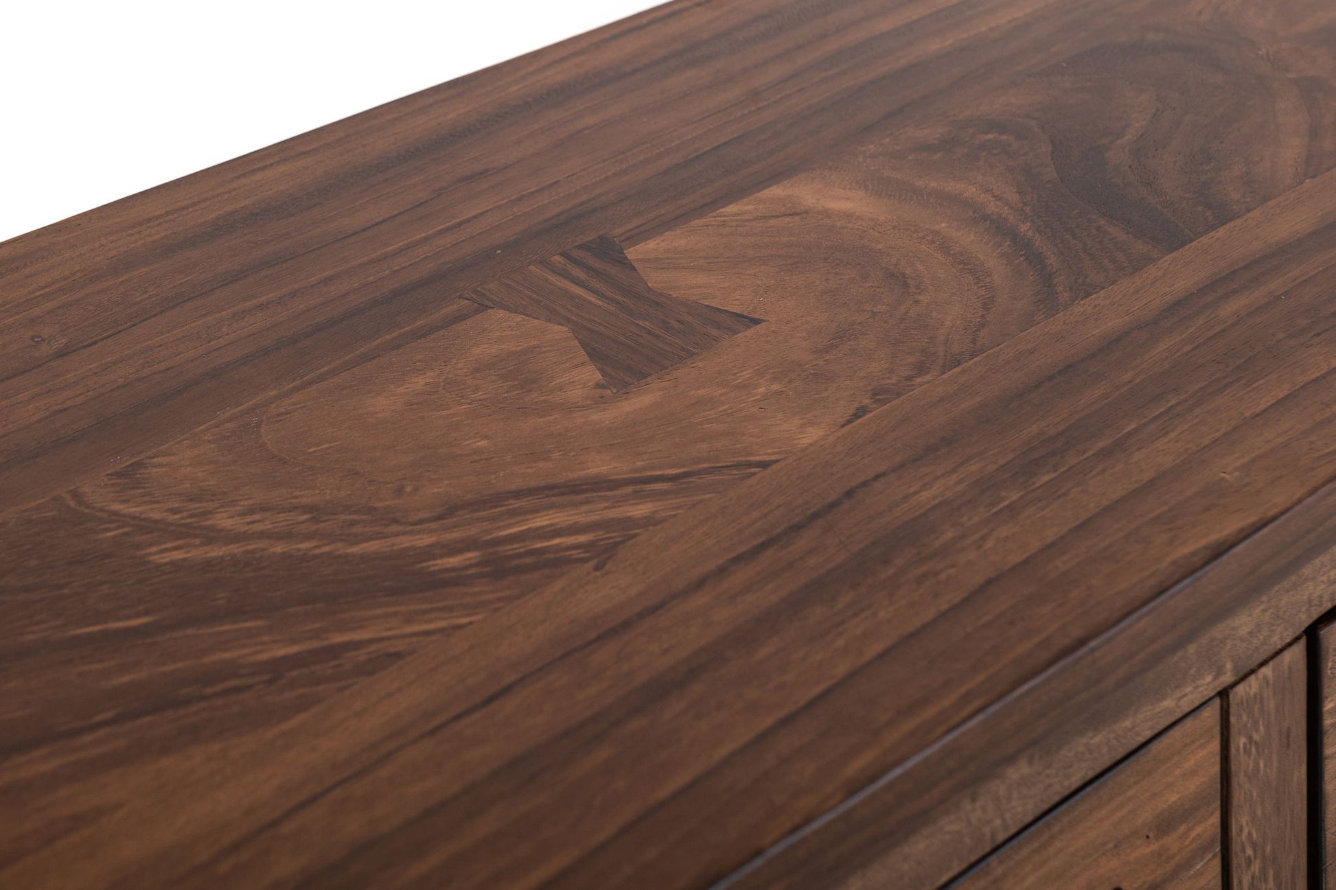- Parota wood on top and sustainable mango wood on the rest of the case piece.