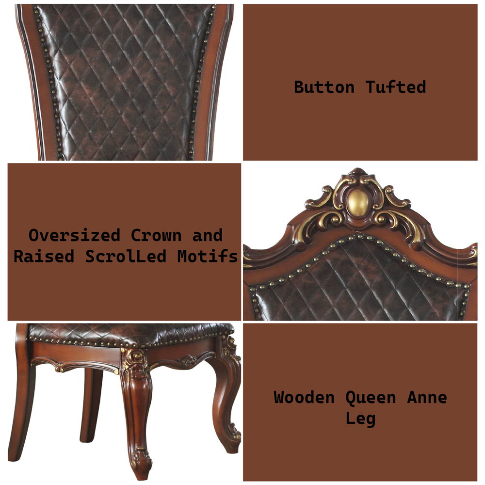 Picardy - Side Chair Set of 2) - Butterscotch Synthetic Leather /Fabric & Antique Pearl