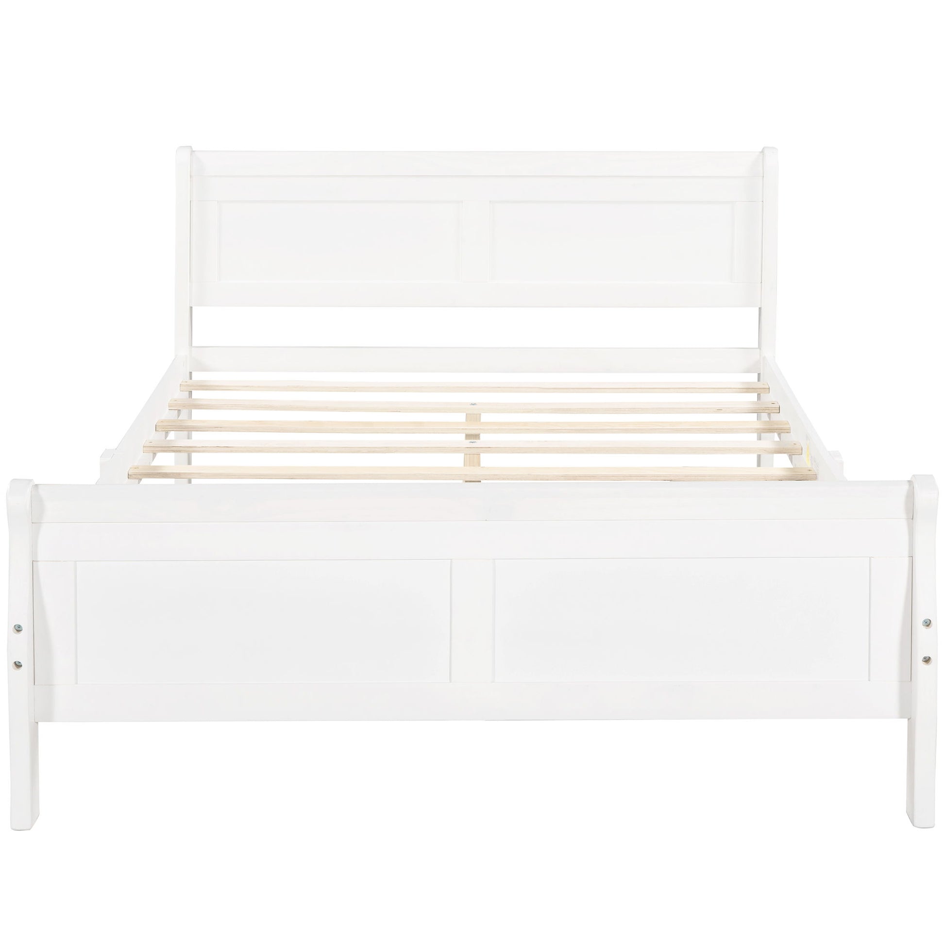 Twin Platform Bed Frame Mattress Foundation Sleigh Bed With Headboard, Footboard, Slat Support - White