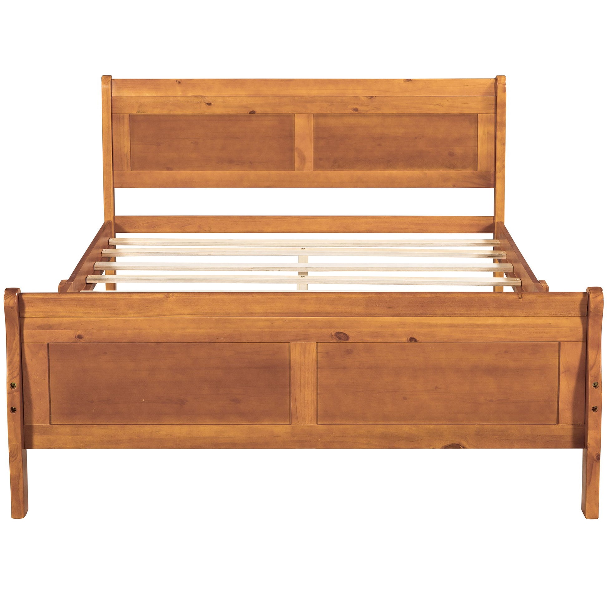 Twin Platform Bed Frame Mattress Foundation Sleigh Bed With Headboard, Footboard, Slat Support - Oak