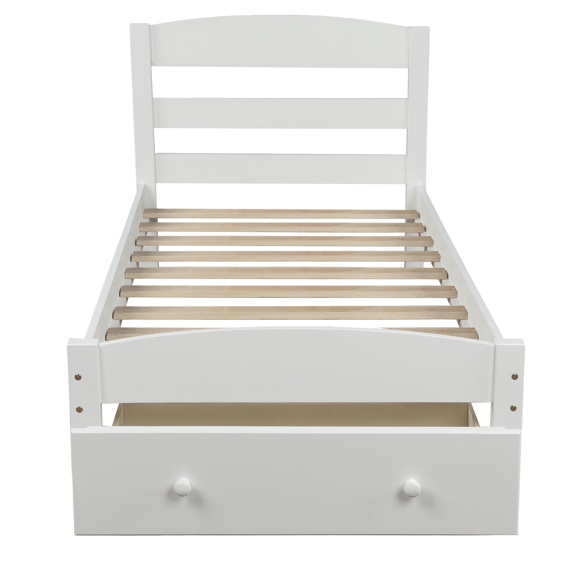 Twin Platform Bed Frame With Storage Drawer And Slat Support No Box Spring Needed - White