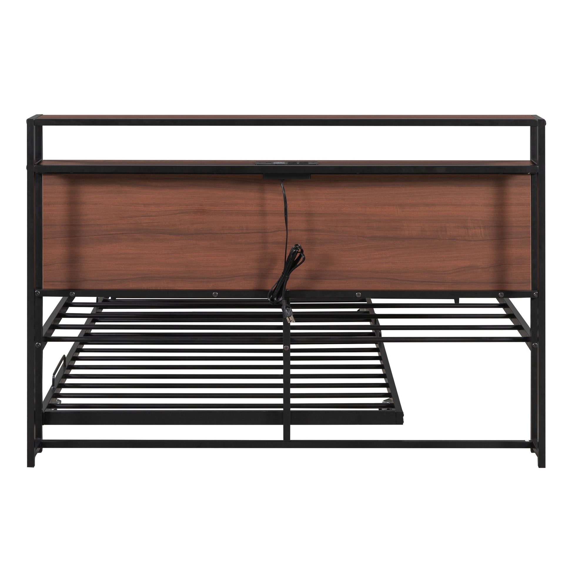 Full Size Platform Bed Frame With Trundle, USB Ports And Slat Support,No Box Spring Needed - Black