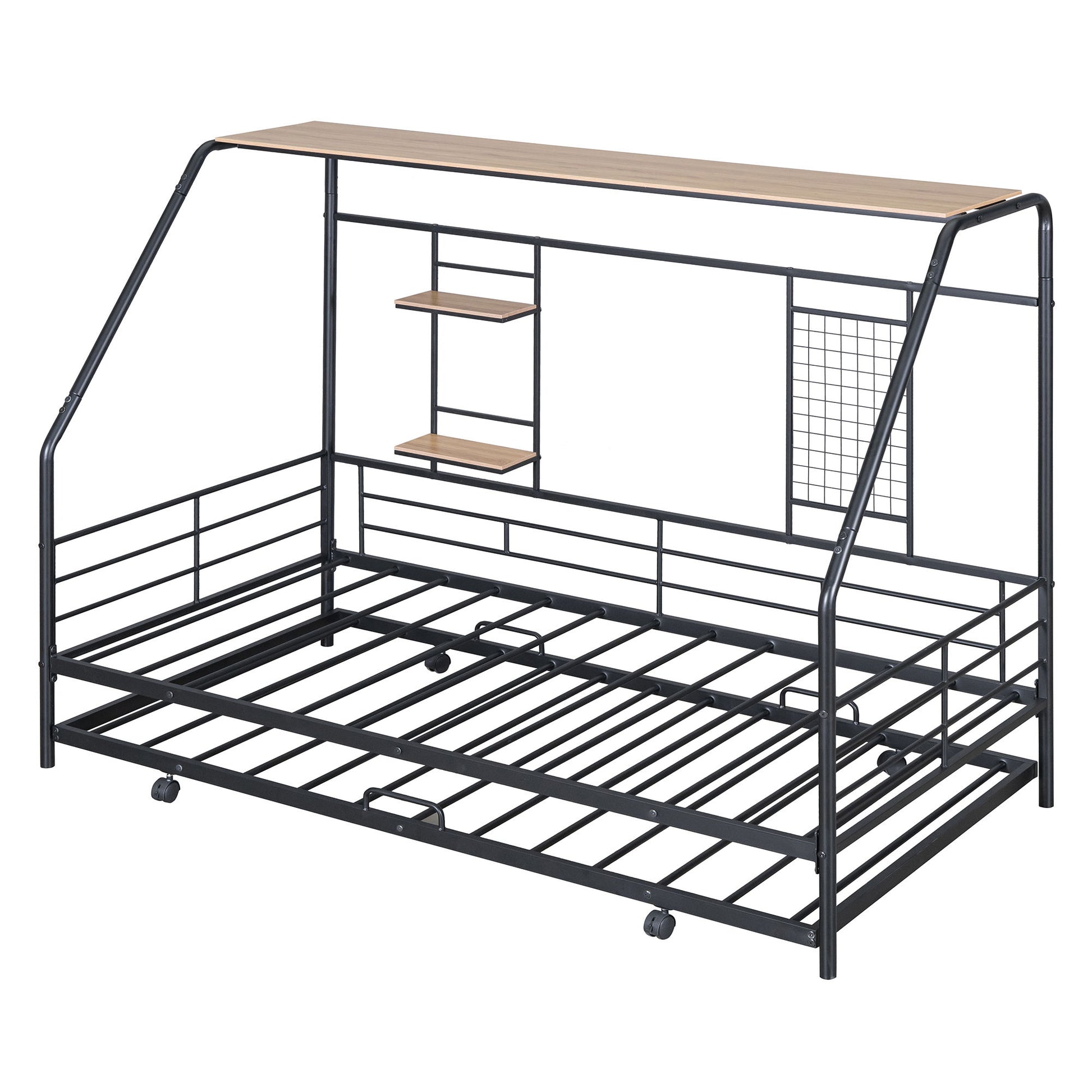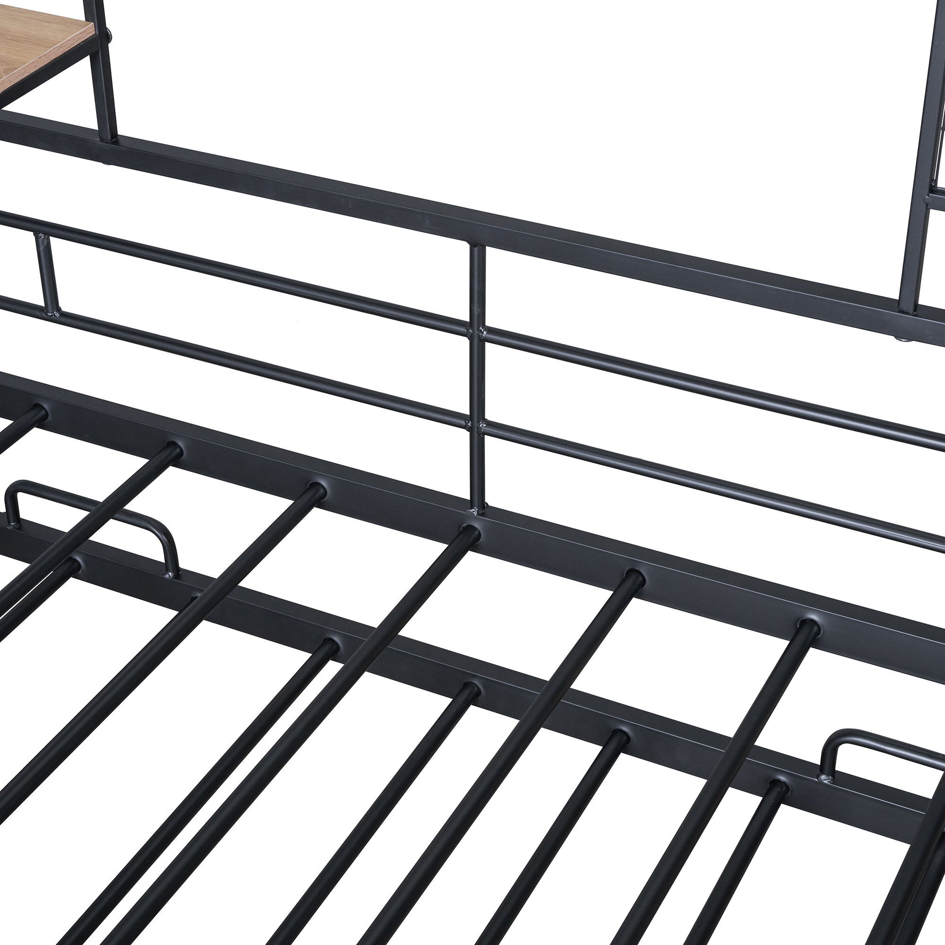 Built-in Shelf and Grid: The metal bed maximizes space utilization with three shelves and a metal grid for hanging decorations, photos, and more, adding functional storage and personalization options.