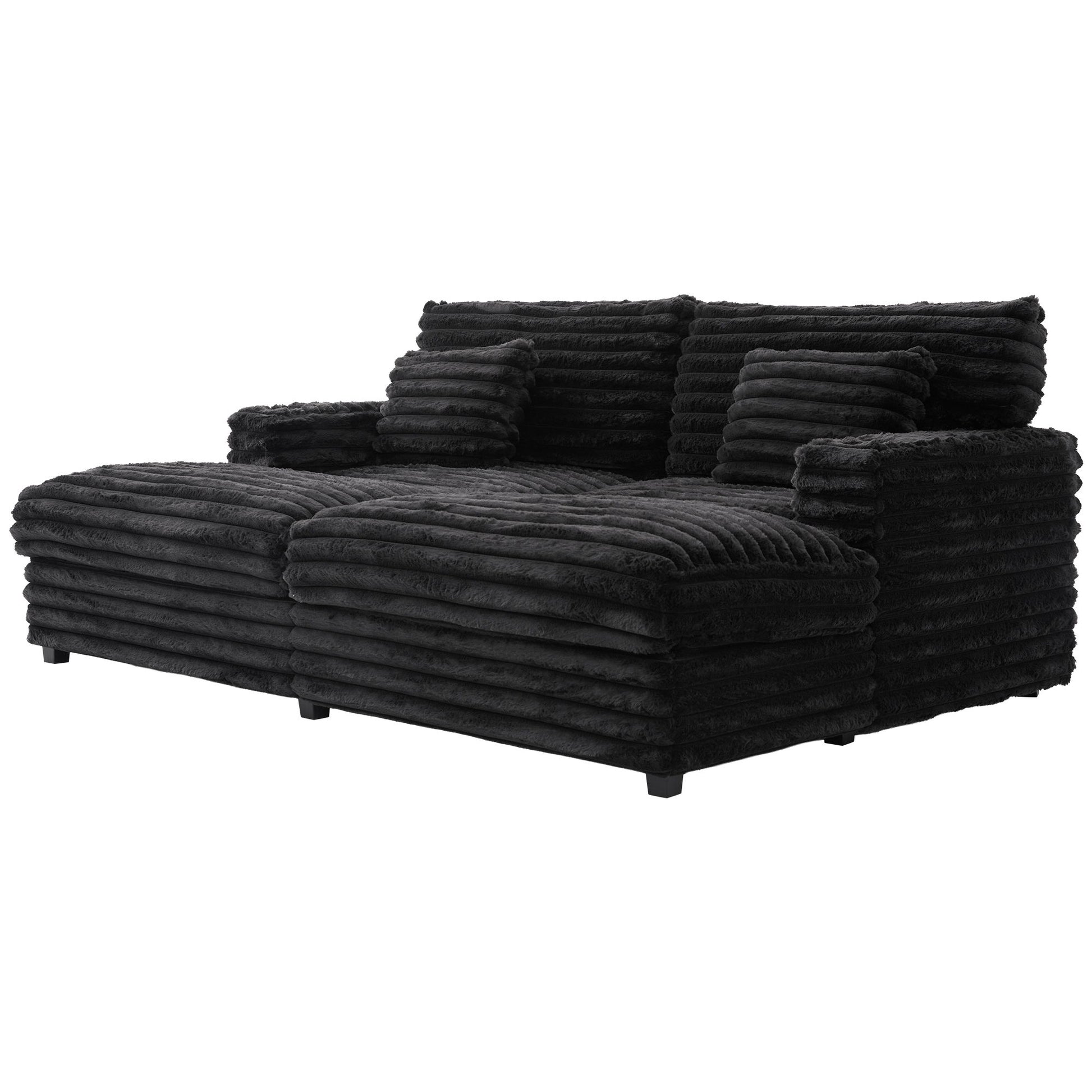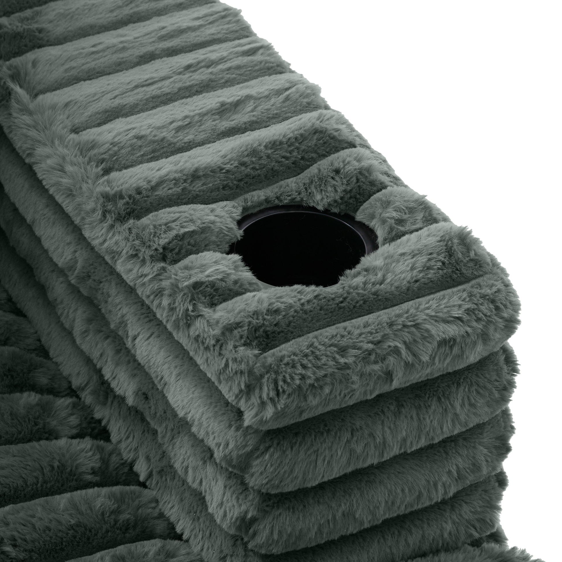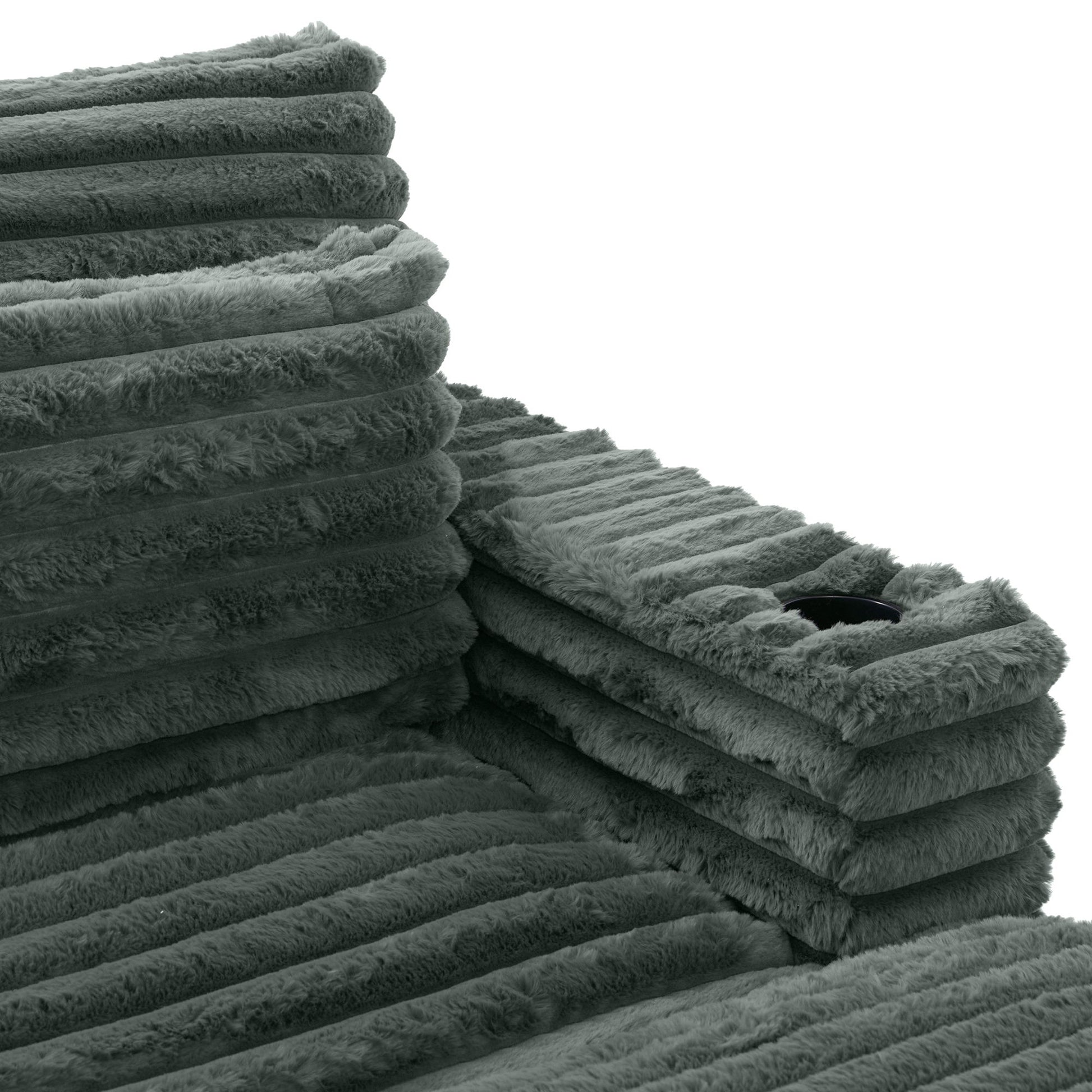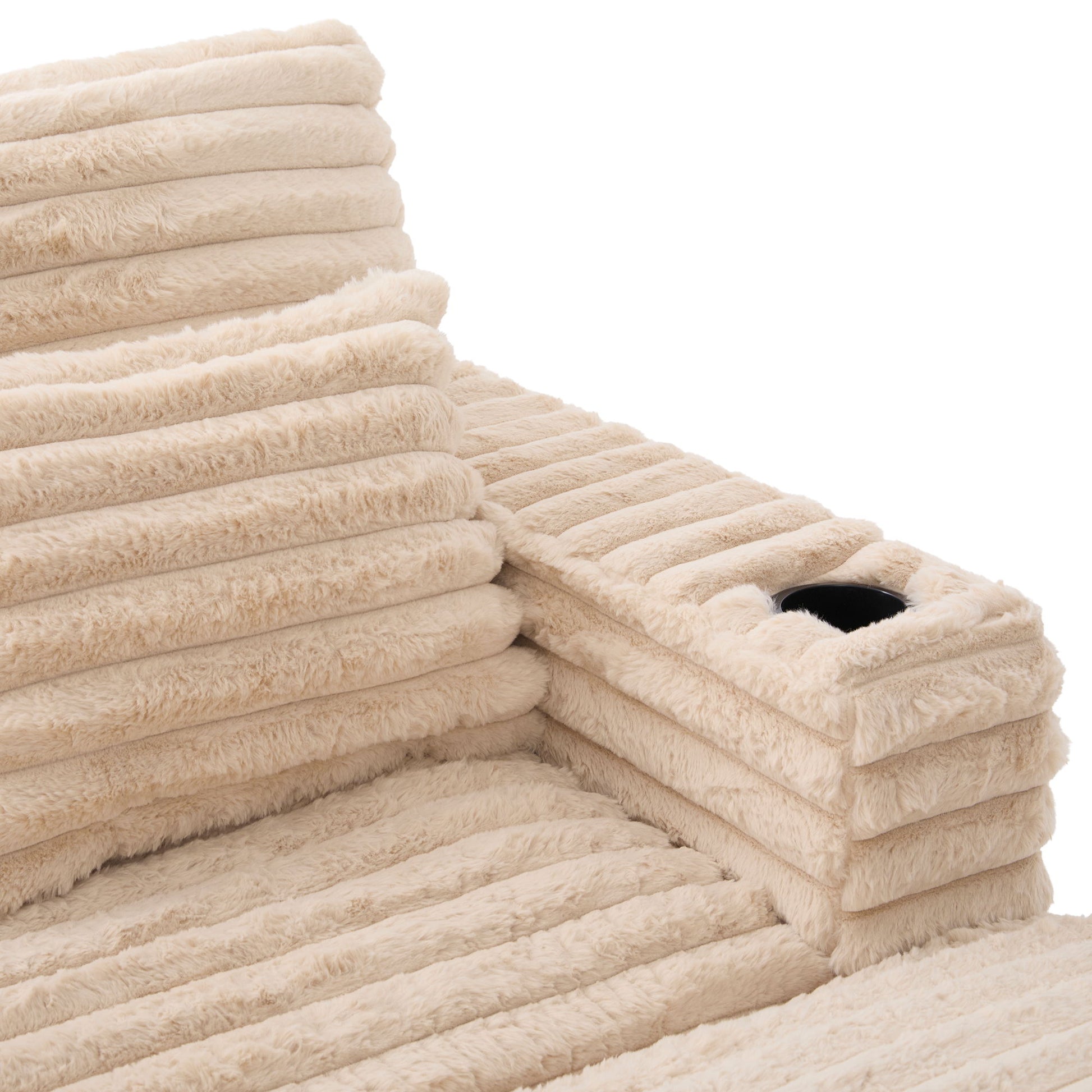Plush Oversized Double Chaise Lounge Sofa Bed With USB Ports And Cup Holders