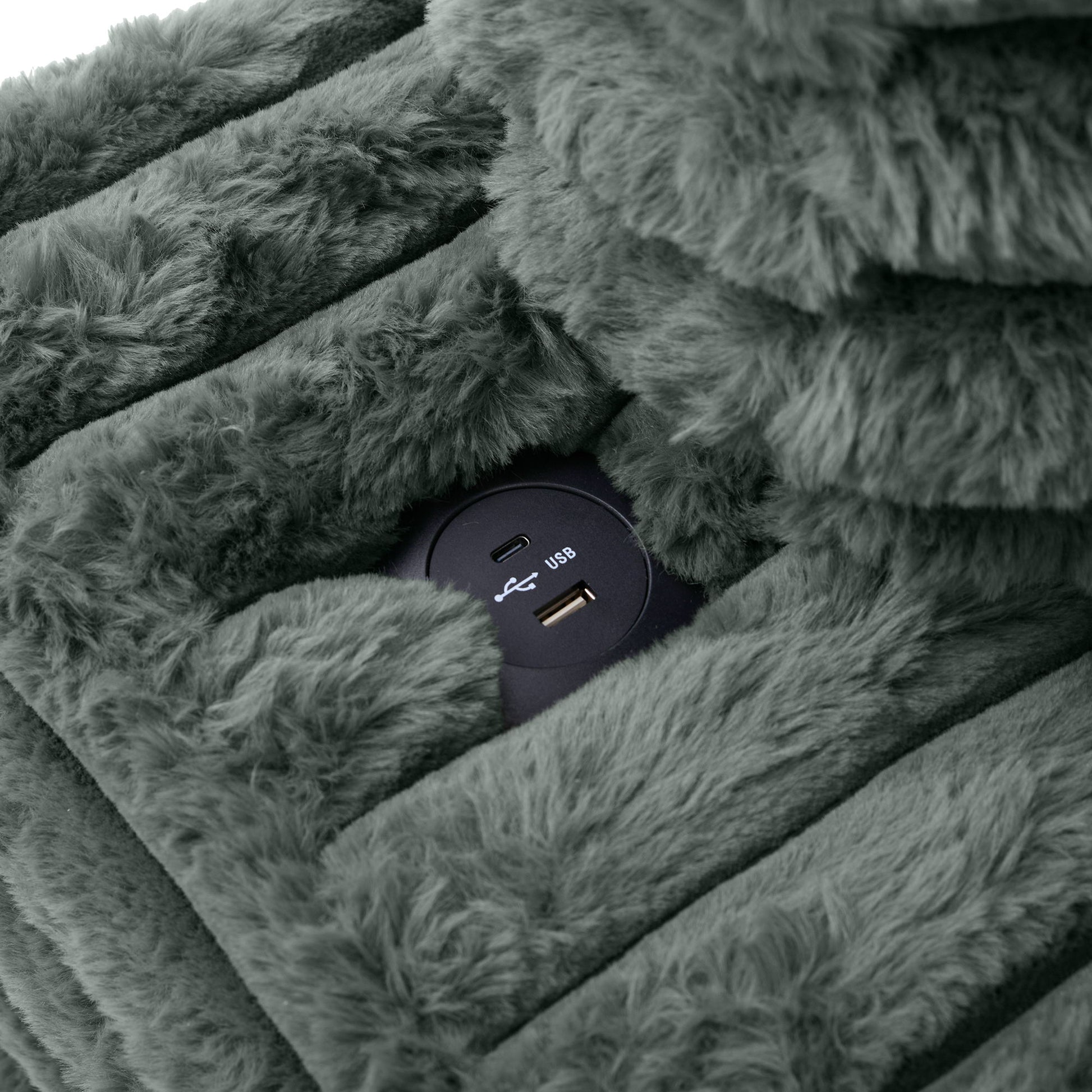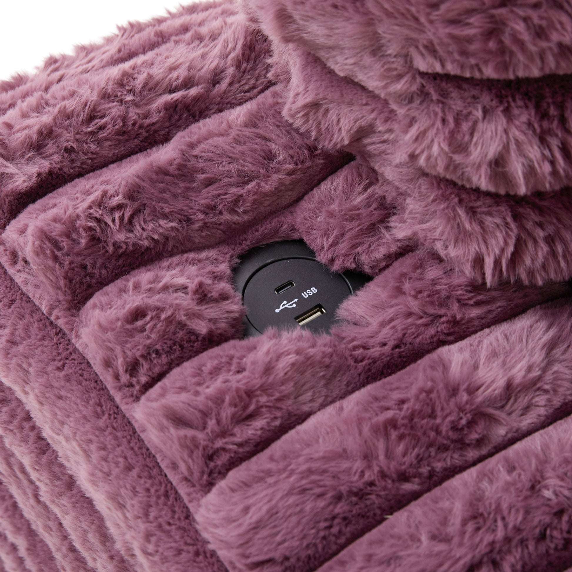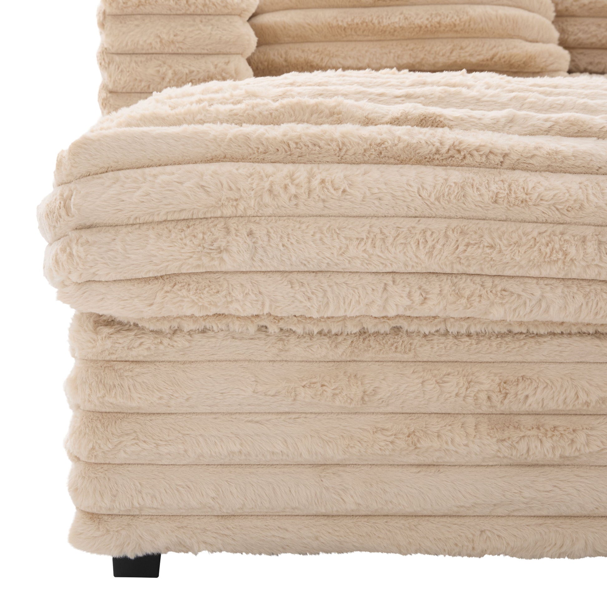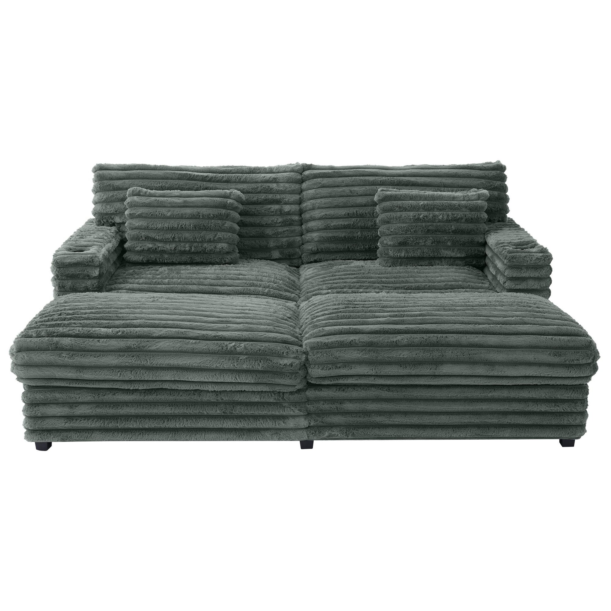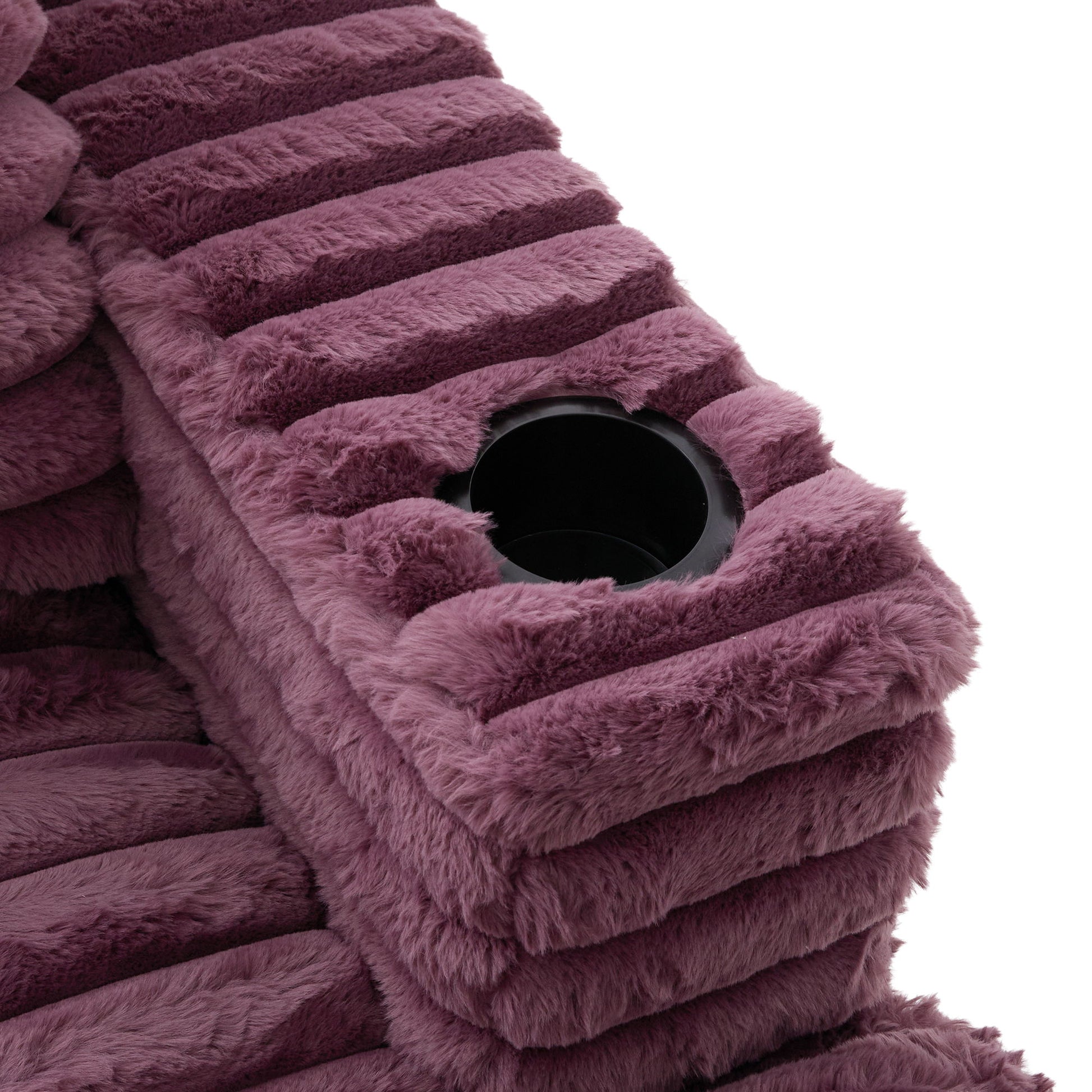 Plush Oversized Double Chaise Lounge Sofa Bed With USB Ports And Cup Holders
