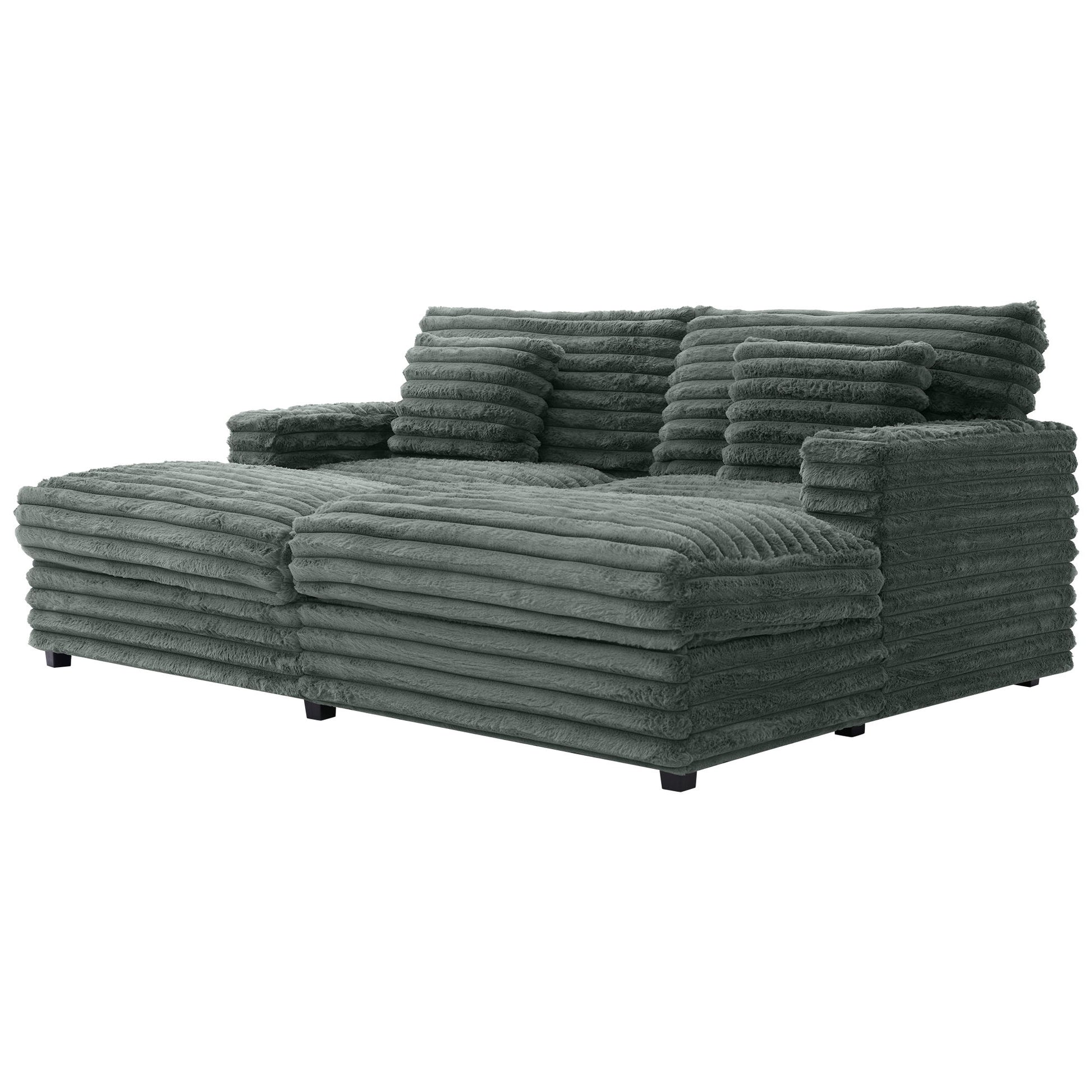 Oversized Double Chaise Lounge Sofa Bed Cloud Couch Upholstered Sleeper Sofa Daybed With 2 Supportive Pillows, USB Ports And Cup Holders - Dark Gray