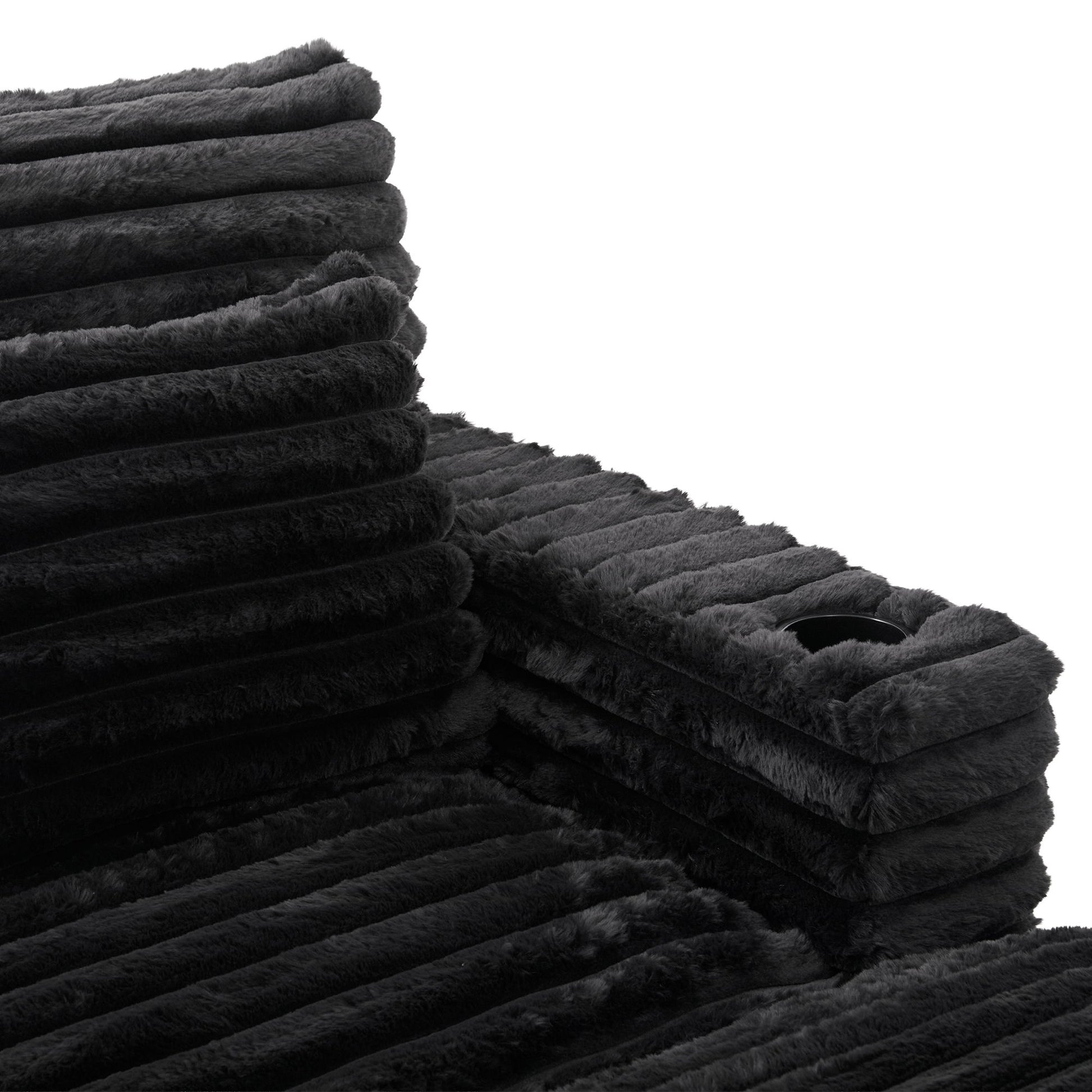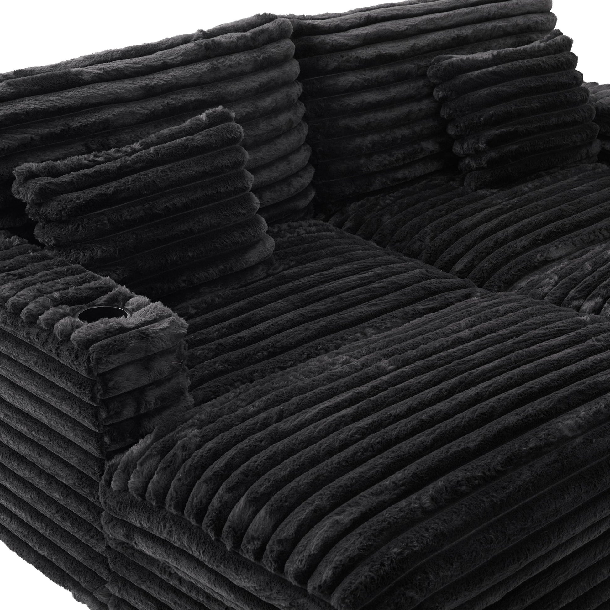 Oversized Double Chaise Lounge Sofa Bed With USB Ports And Cup Holders - Black