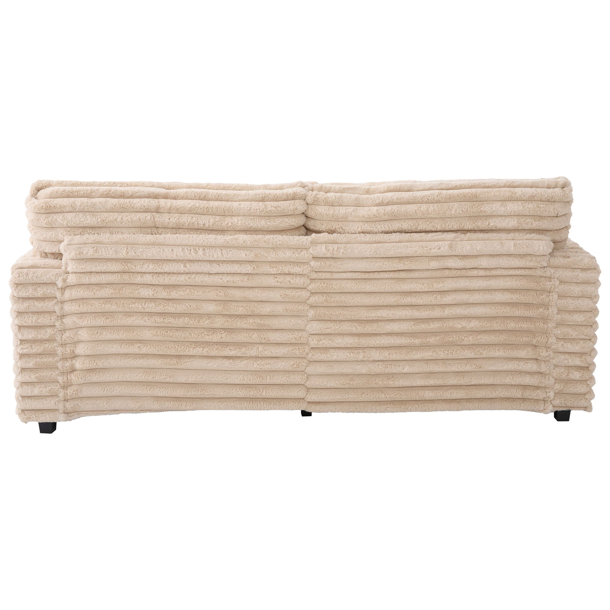 Upholstered Oversized Double Chaise Lounge Sofa With USB Ports And Cup Holders - Champagne