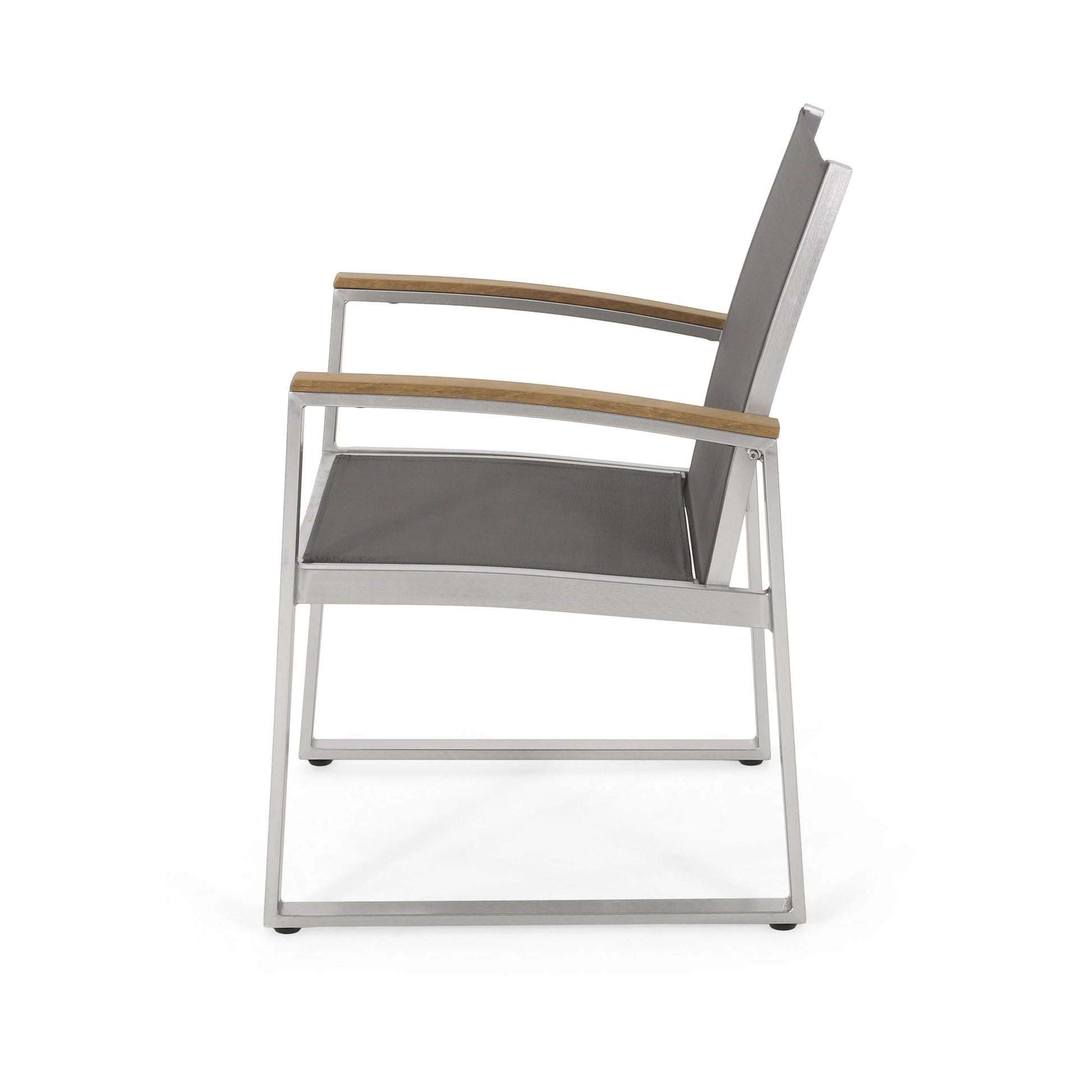 Poetic - Outdoor Dining Chair With Faux Wood Arms And Aluminum Frame (Set of 2) - Gray