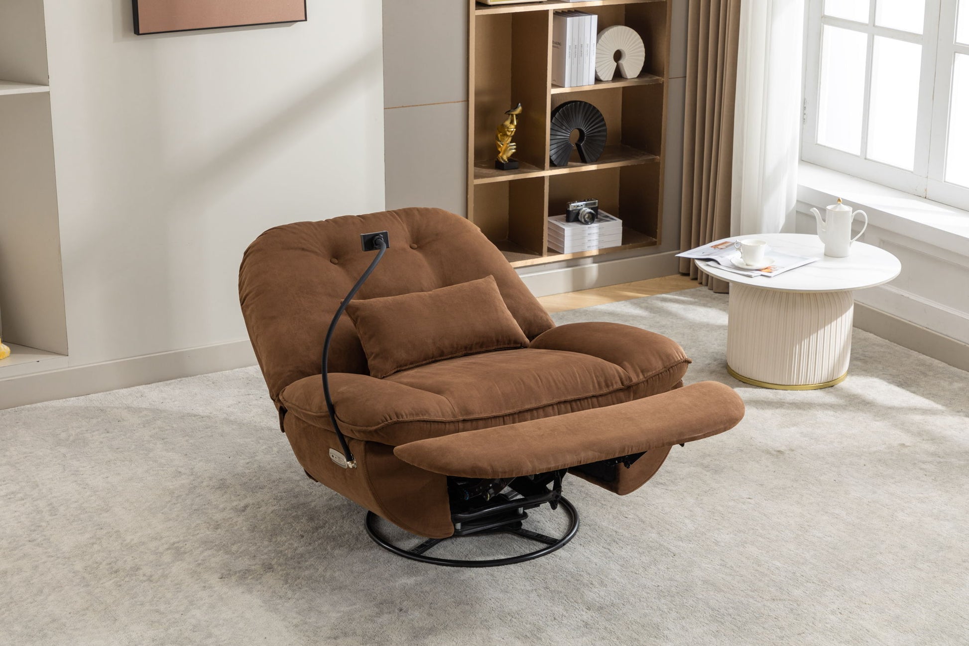Power Recliner Swivel Glider USB Charger With Bluetooth Music Player Different Function Sleep Working Game And Leisure Model - Brown