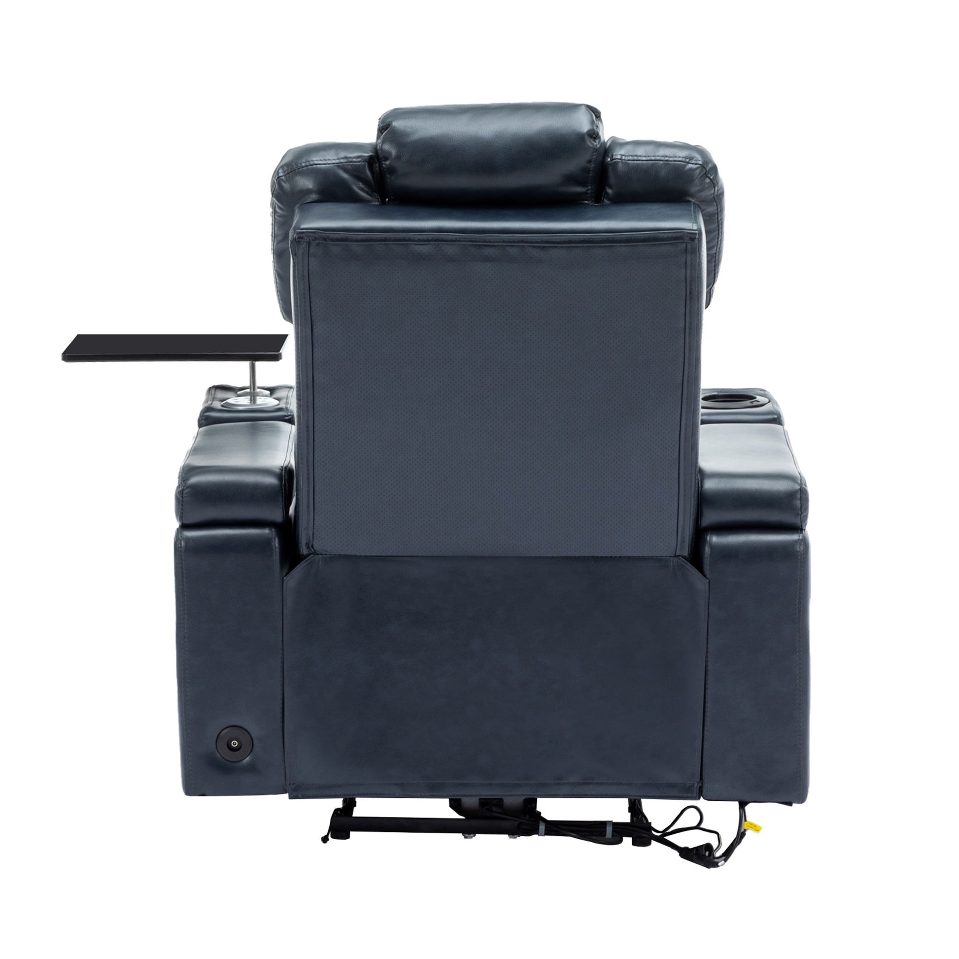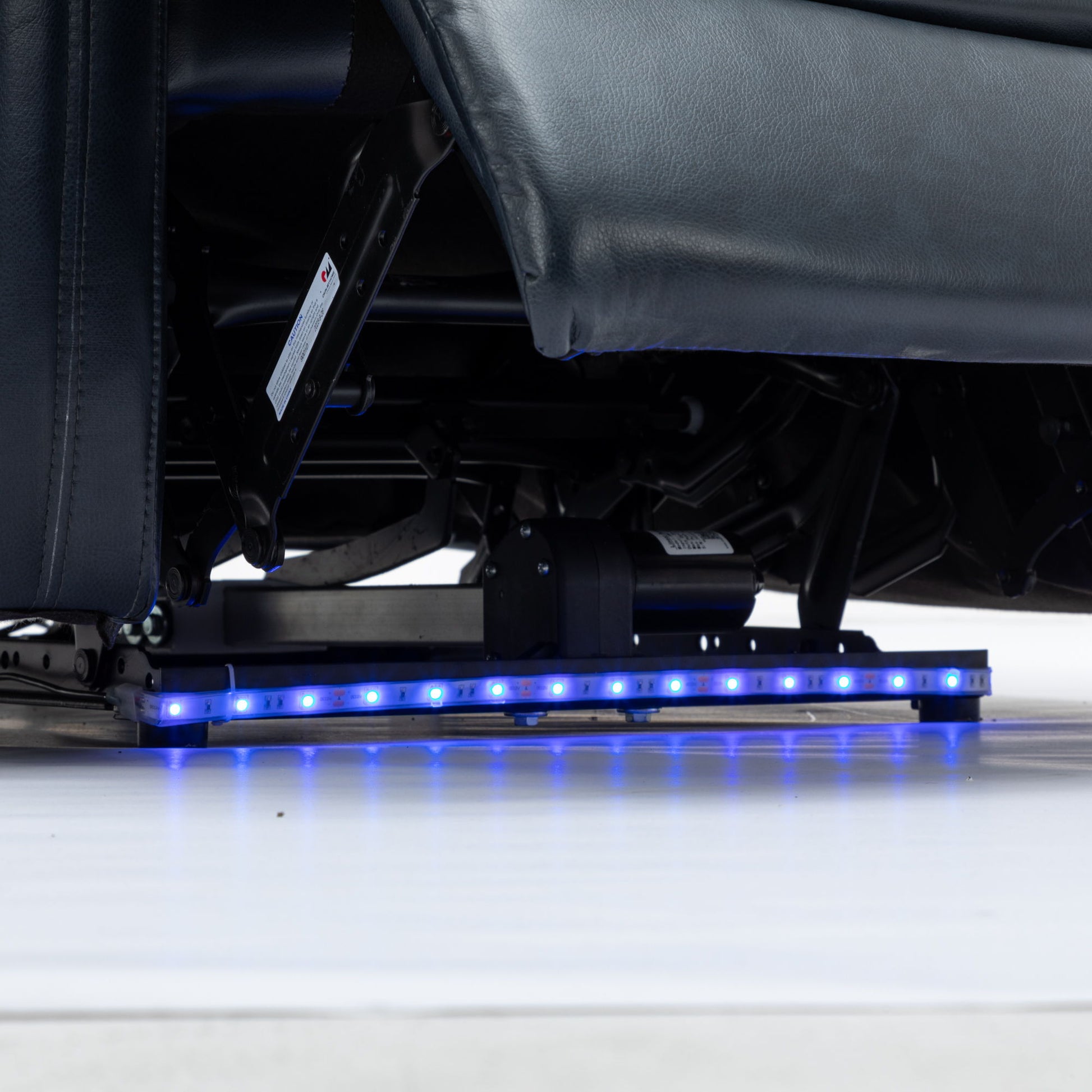 Power Recliner Theater Chair With Cooling Cup Holder, Bluetooth Speaker, LED Lights, USB Ports - Blue