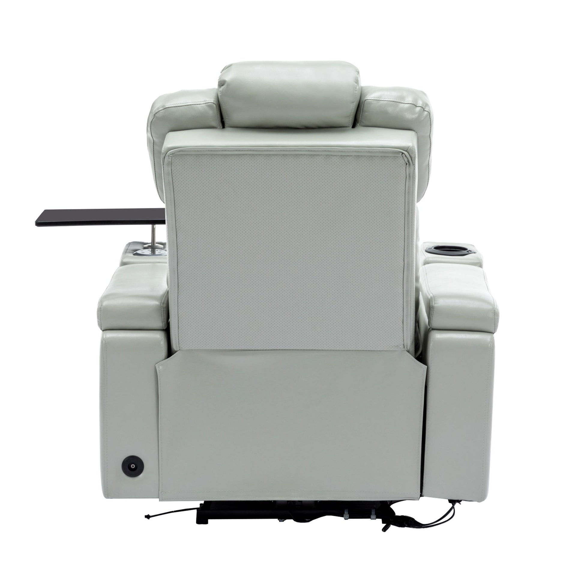 Power Recliner With Cooling Cup Holder, Bluetooth Speaker, LED Lights, USB Ports, Tray Table, Arm Storage - Gray