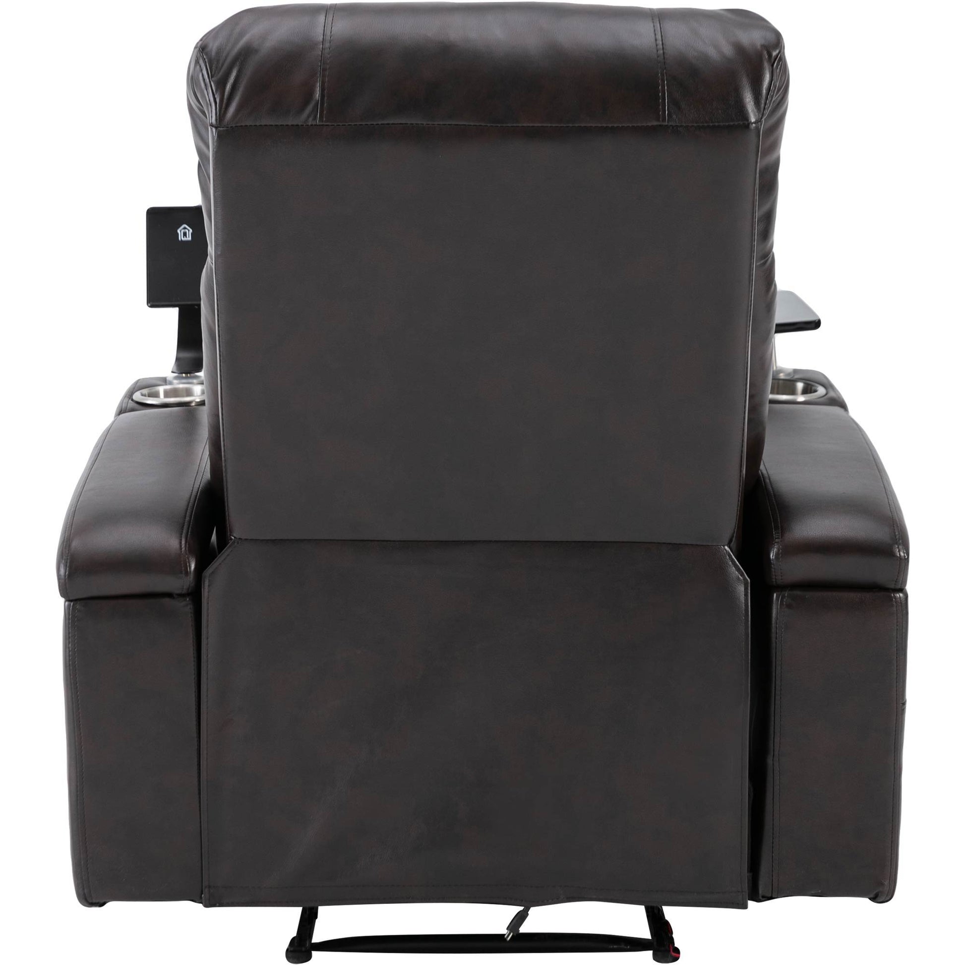 Power Recliner With Storage Arms, Cupholders, Swivel Tray Table And Cell Phone Stand - Brown