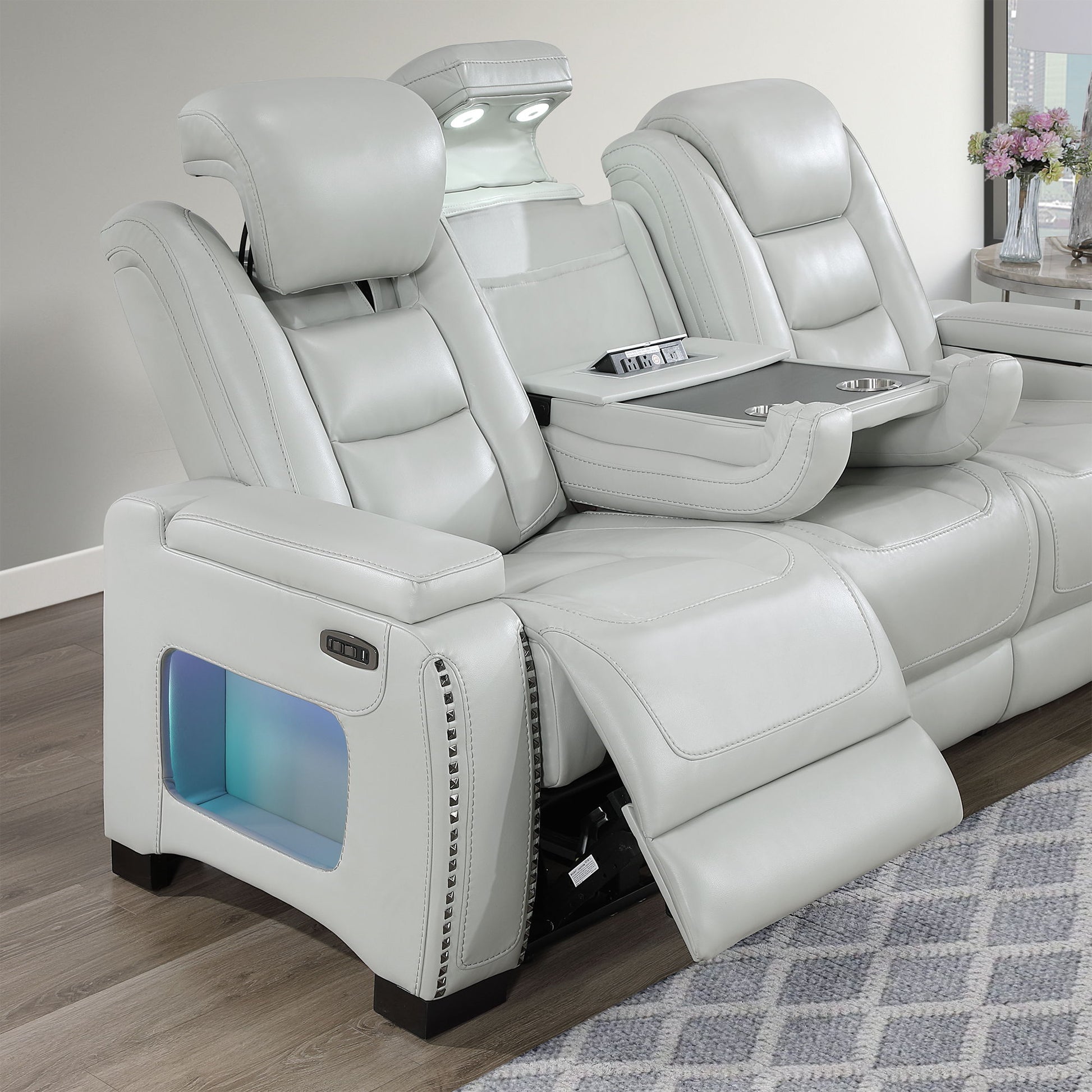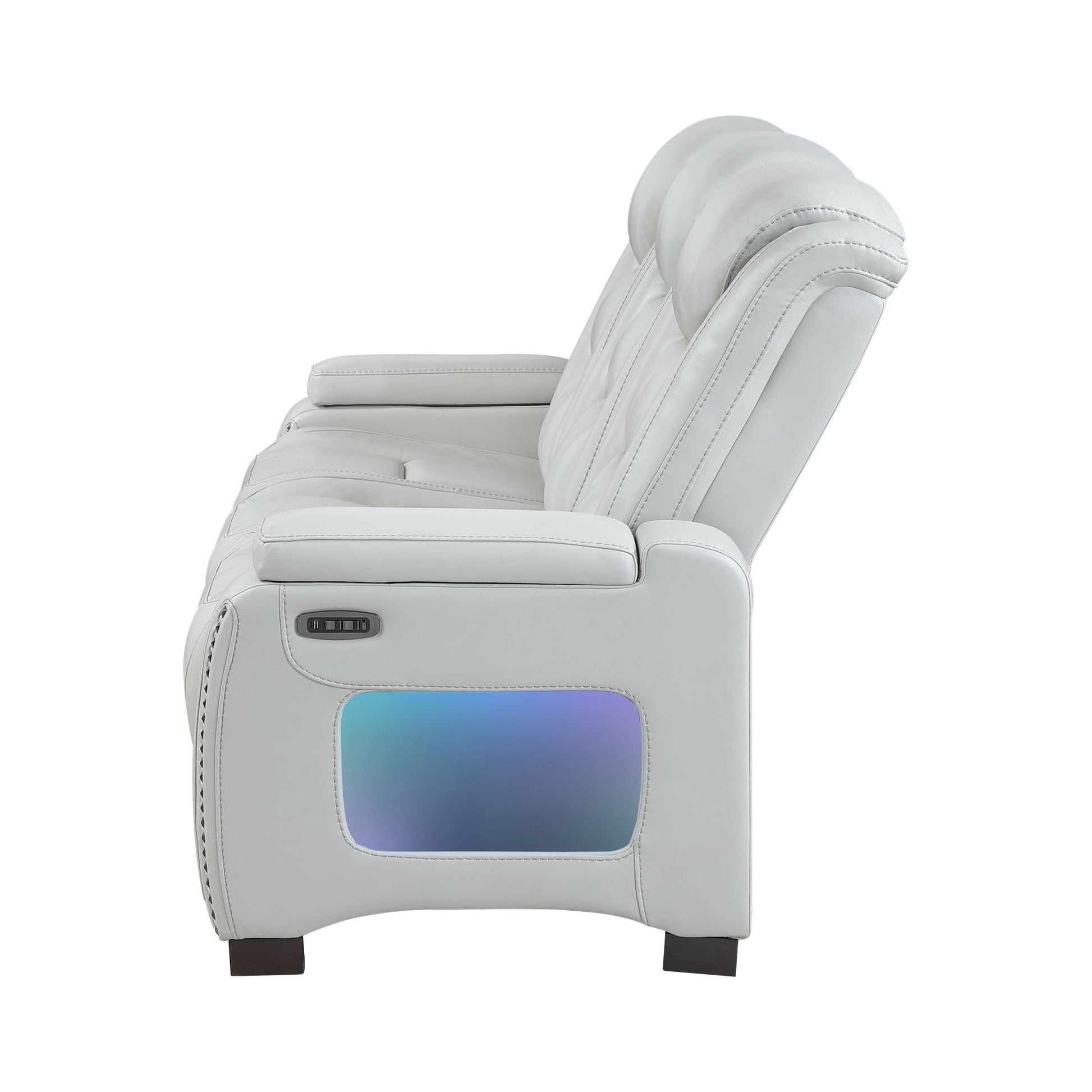 Power Sofa With USB LED Headrest, Bookshelf Arms, And Storage - Gray
