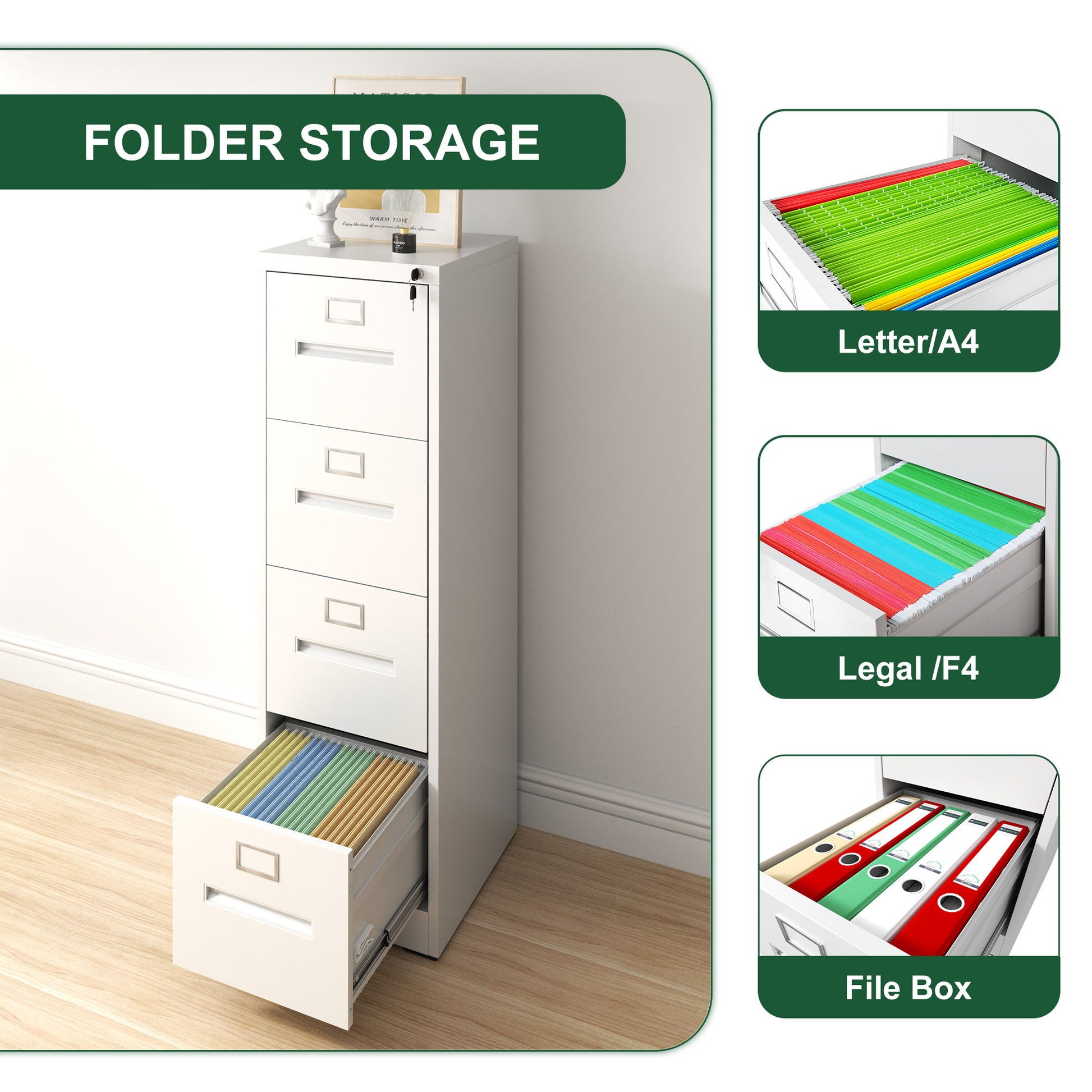 Premium 4 Drawer File Cabinet With Lock Metal Vertical Design For Office And Home, A4 Legal / Letter Size, Steel Construction - Gunmetal Black