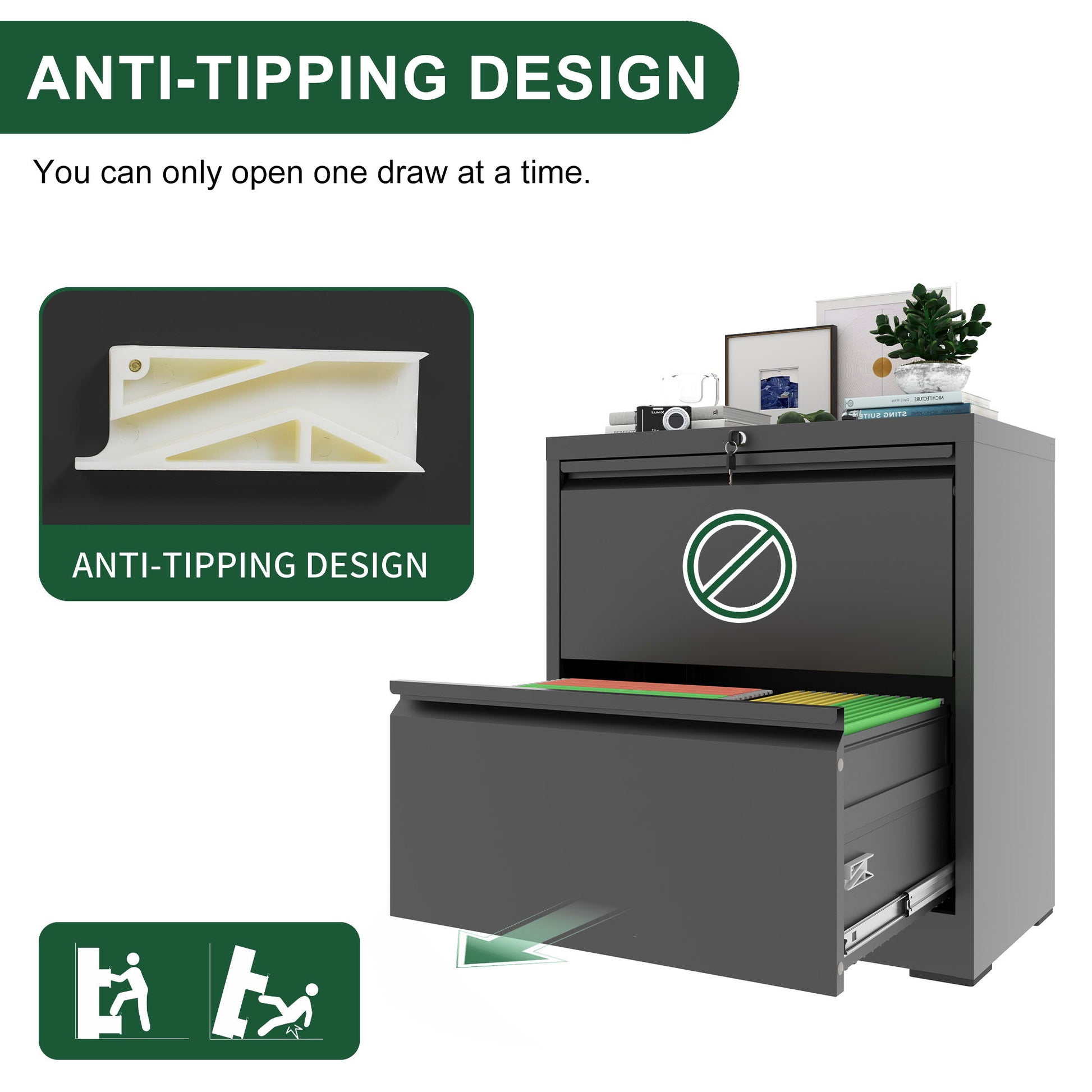 Modern 2 Drawer Steel Lateral File Cabinet With Lock For Legal / Letter / A4 / F4 Size - Black