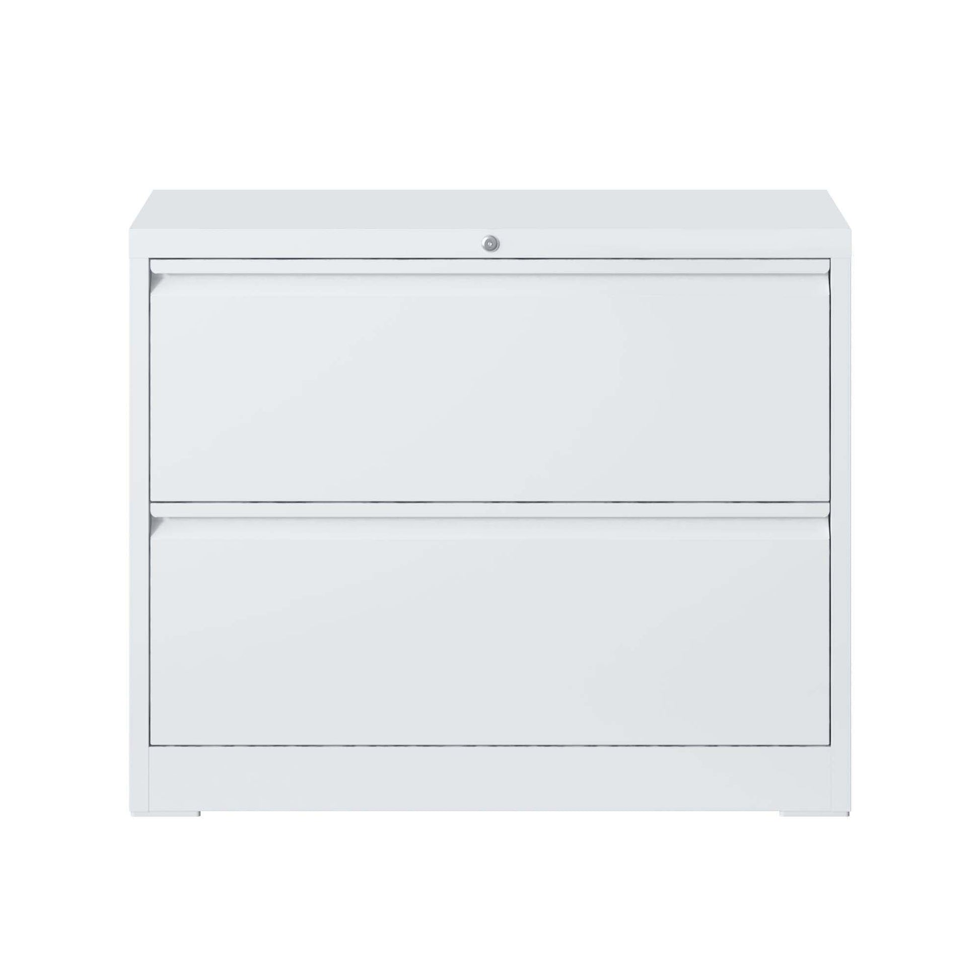 Premium 2 Drawer Metal Lateral File Cabinet With Lock, Steel Filing Cabinet For Home Office - White