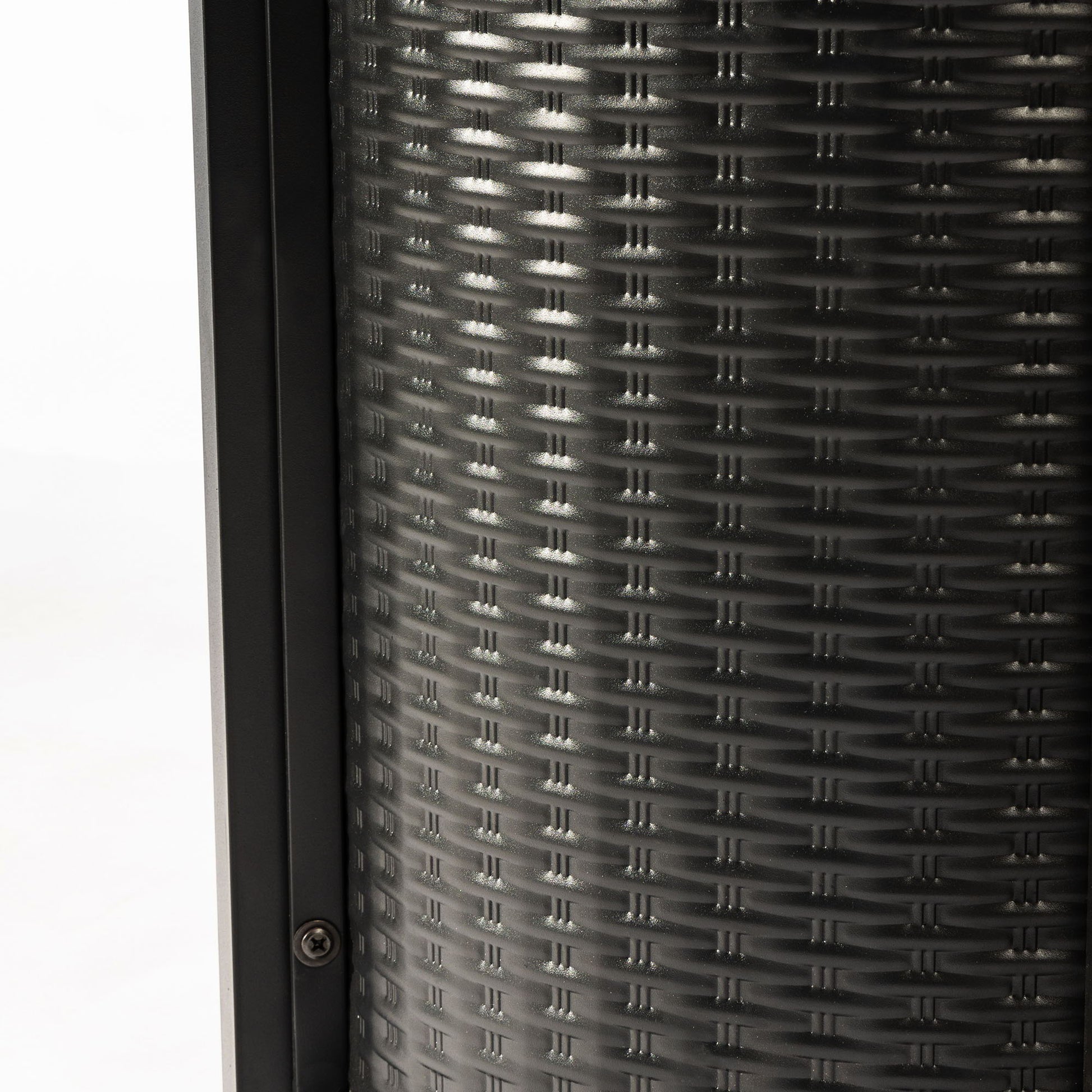 - Innovative Practical & Safe Design: This fire pit blends style and function with an integrated door, steel-stamped wicker-patterned powder-coated panels for charm and durability. Built-in storage hides a 20 lbs propane tank (not included) for easy access.