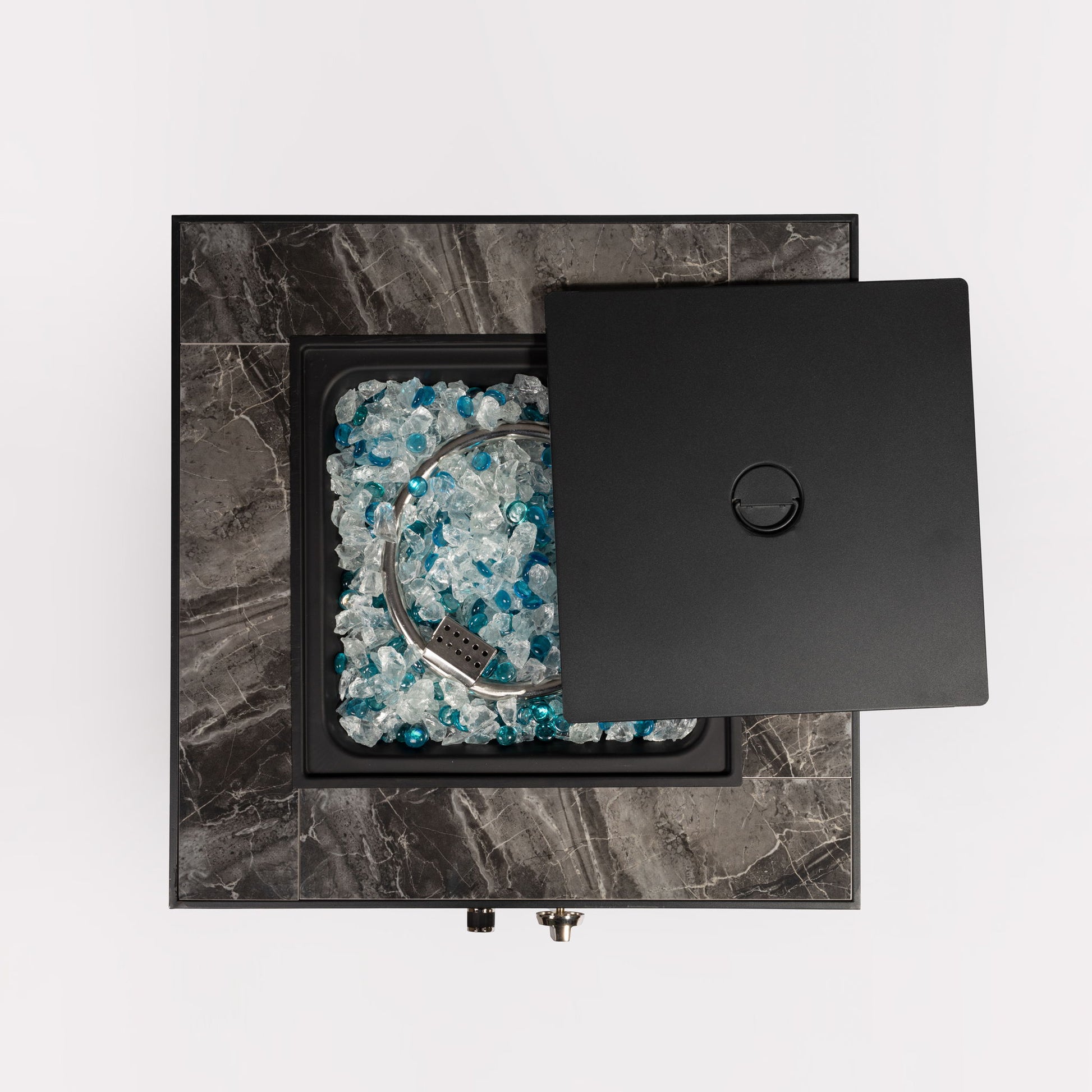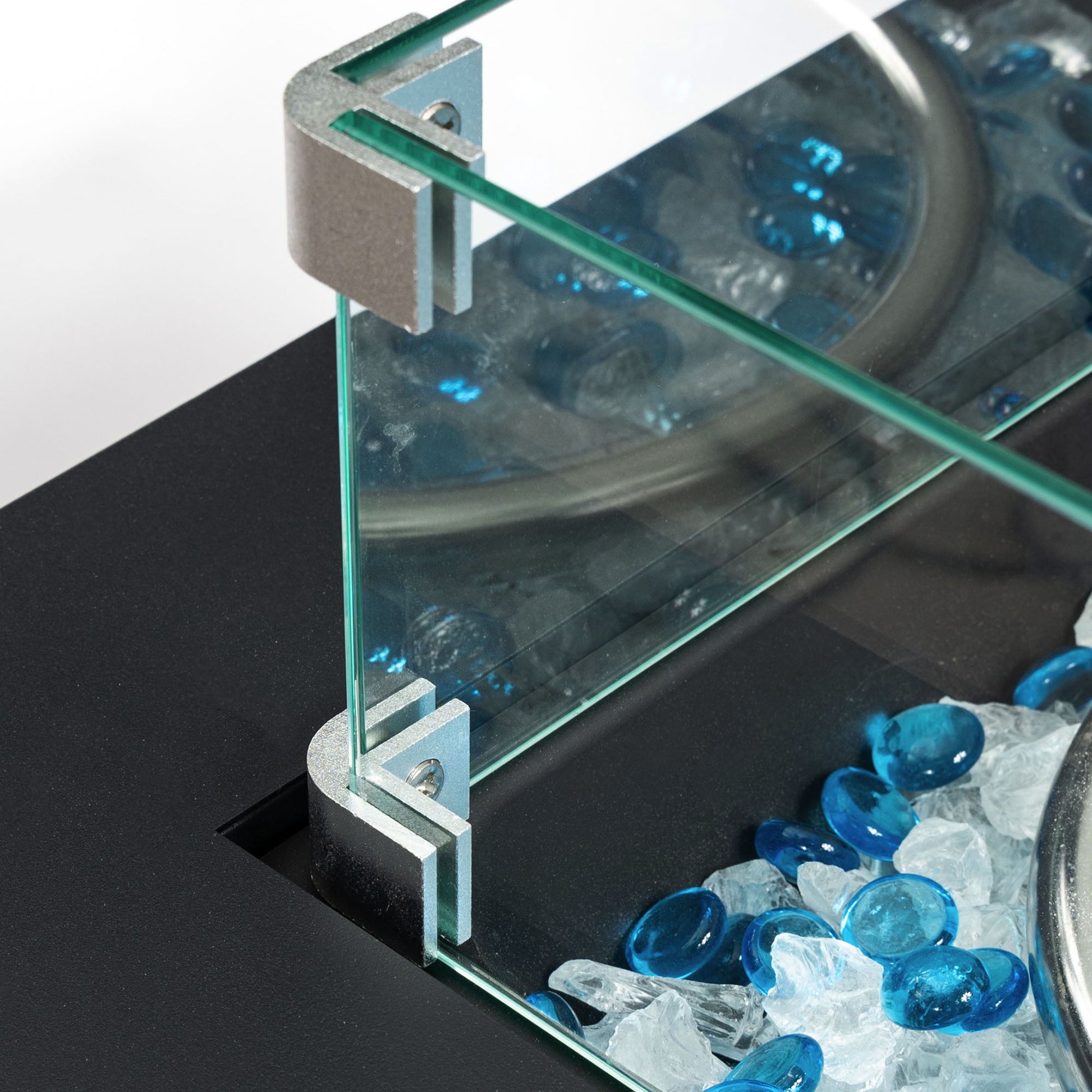 - Compact & Weather-Ready: The square design fits cozy spaces perfectly. Tempered glass shields flames from wind, while the waterproof cover ensures protection, making it ideal for balconies, patios, or poolside relaxation.