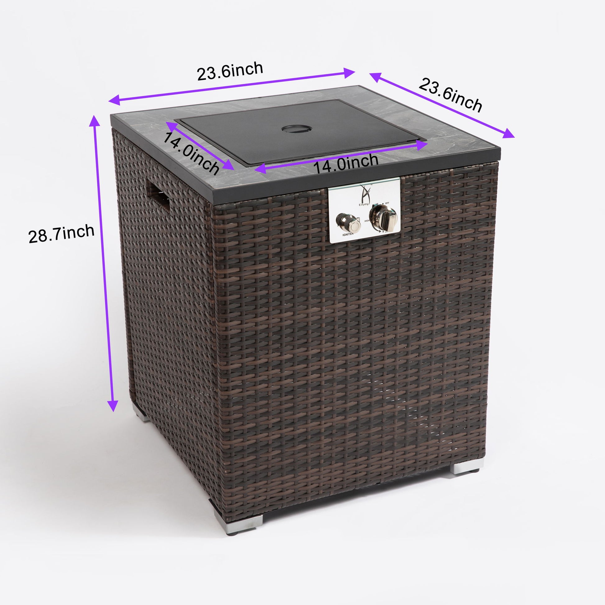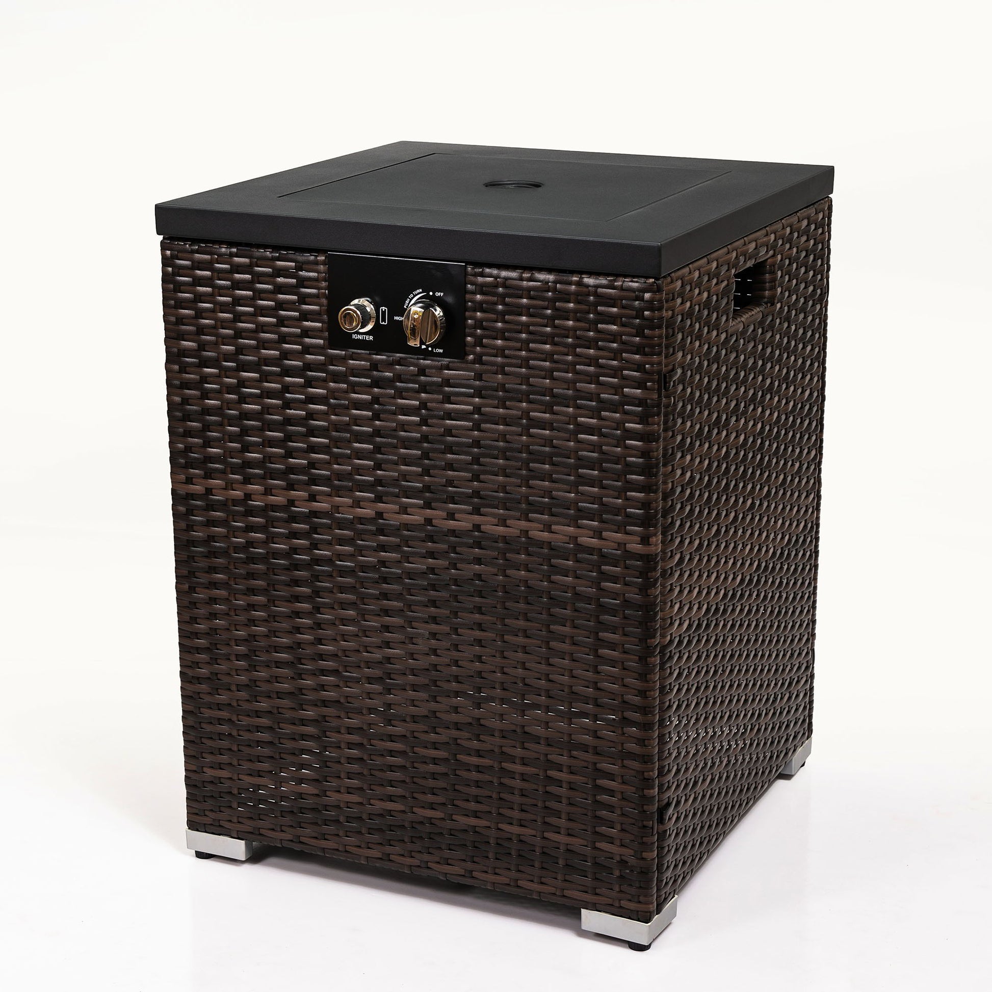 Propane Gas Square Fire Pit, Tile Tabletop With Beautiful Wicker Base For Outside