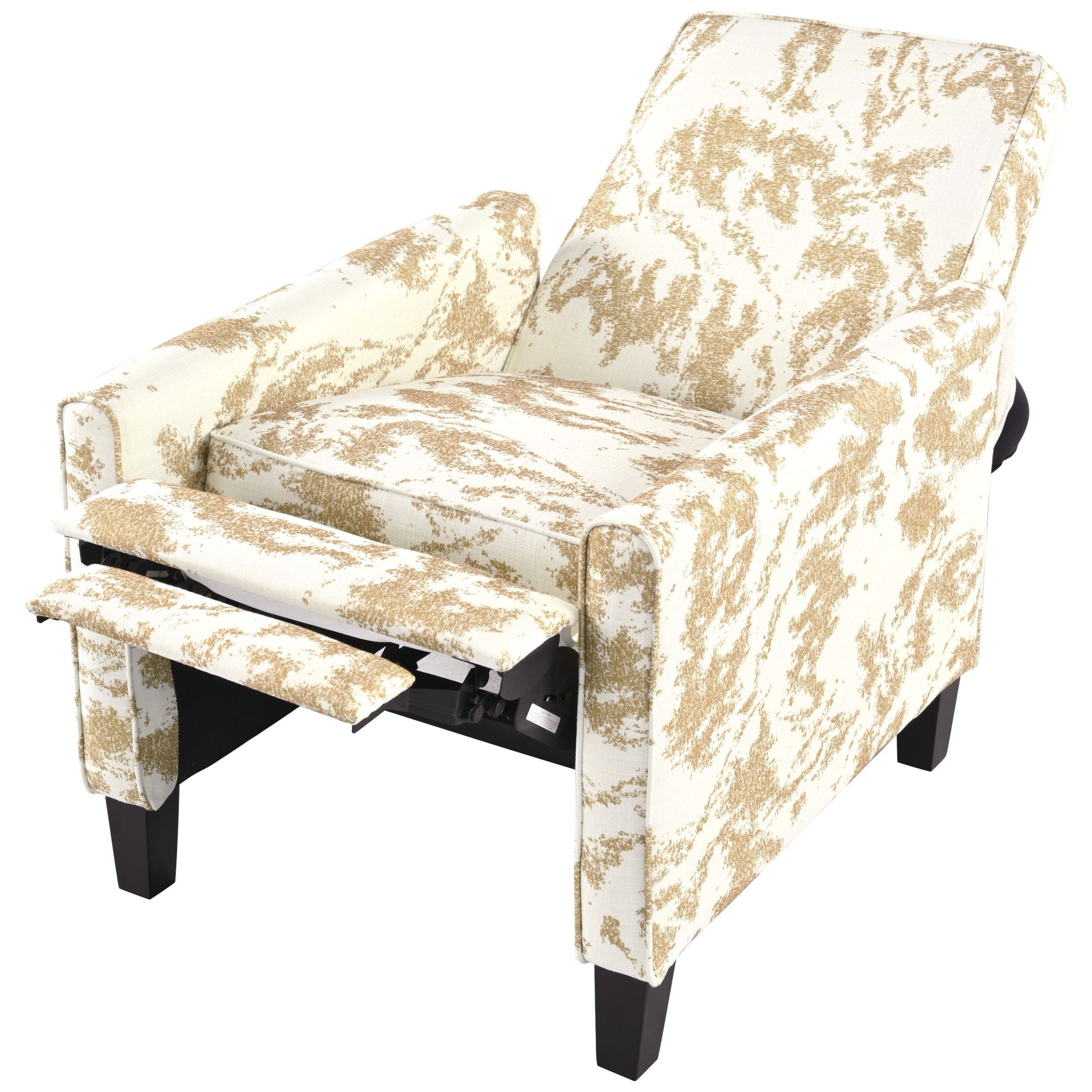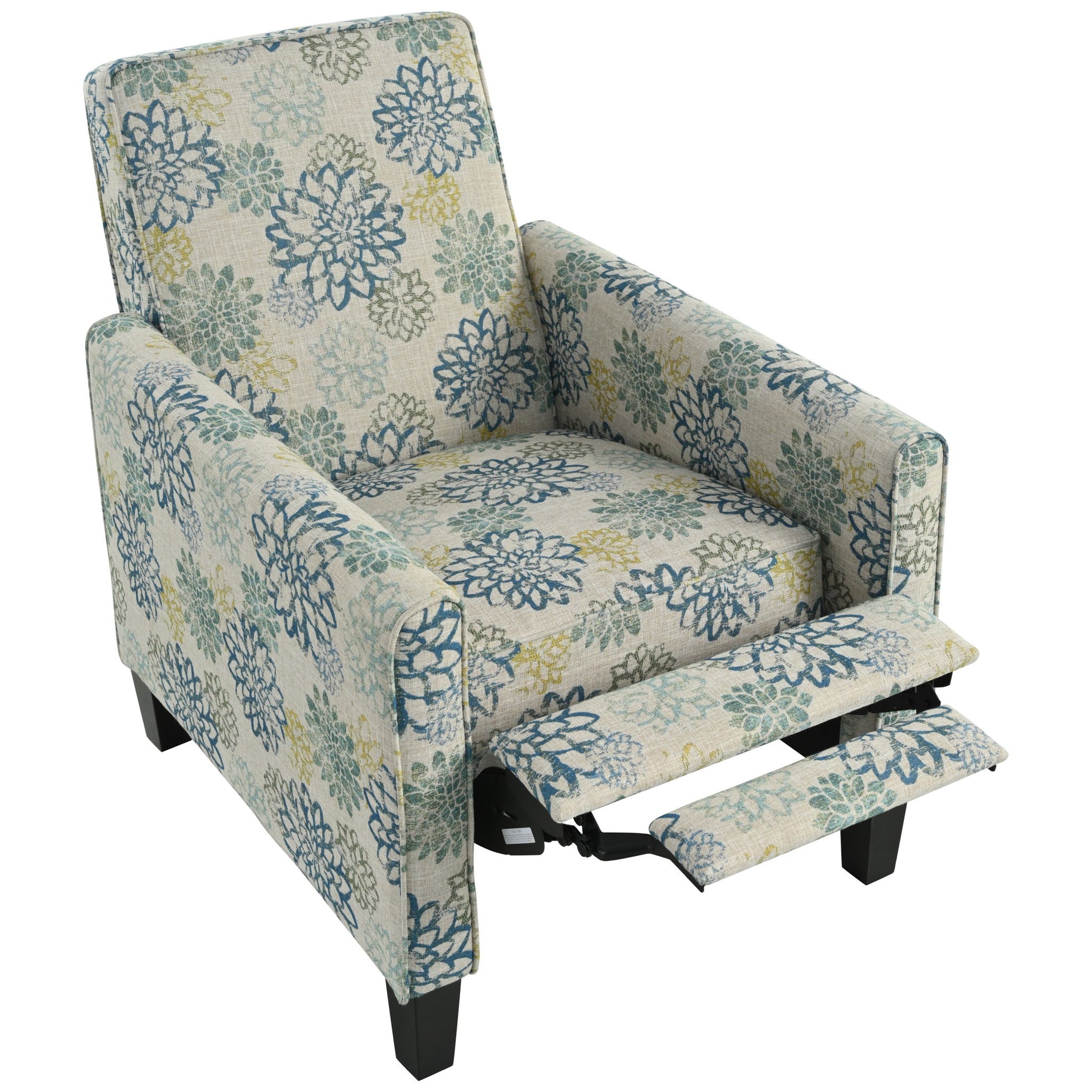 Push Back Recliner Chair Upholstered Armchair - Light Brown / Blue