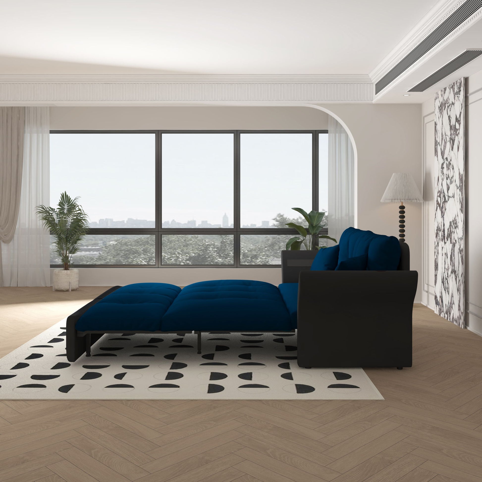 Queen Pull Out Sofa Bed, 3 In 1 Convertible Sleeper Tufted Sofa & 2 Soft Pillows - Blue