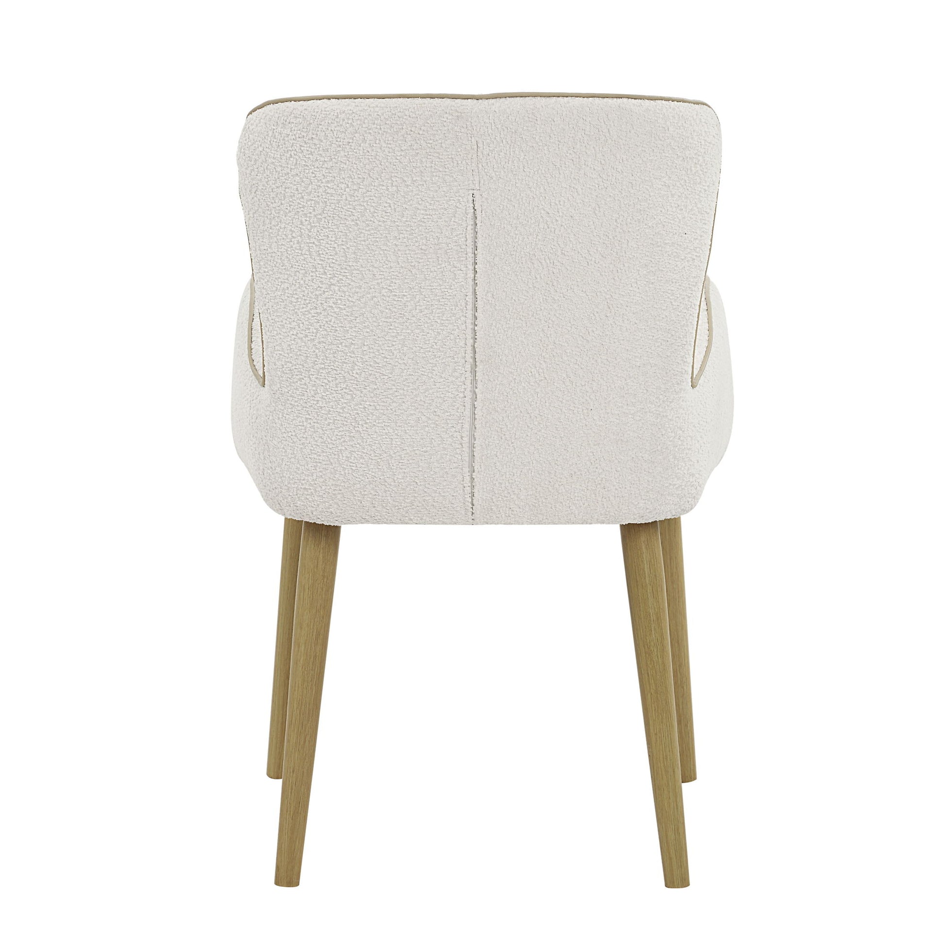 - Chic Upholstery: This side chair features a luxurious beige boucle upholstery, adding a soft, textured elegance to any dining or living area, enhancing the overall aesthetic with its chic design.