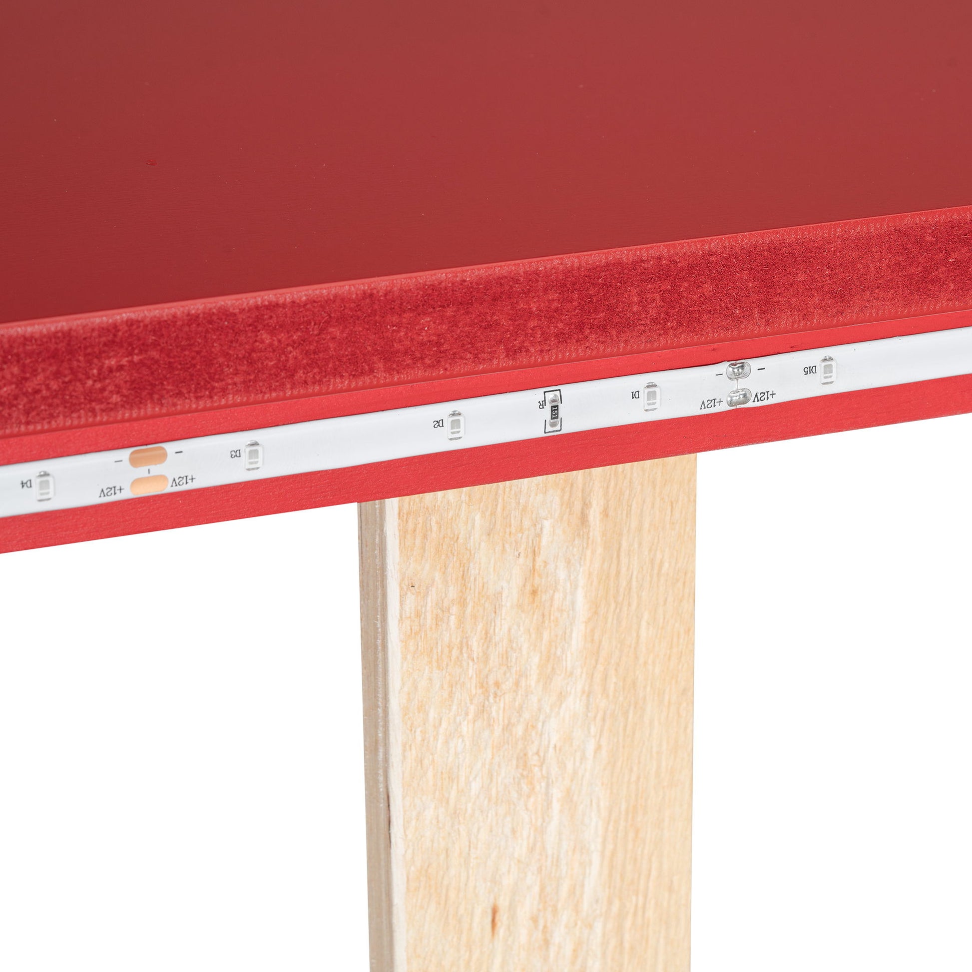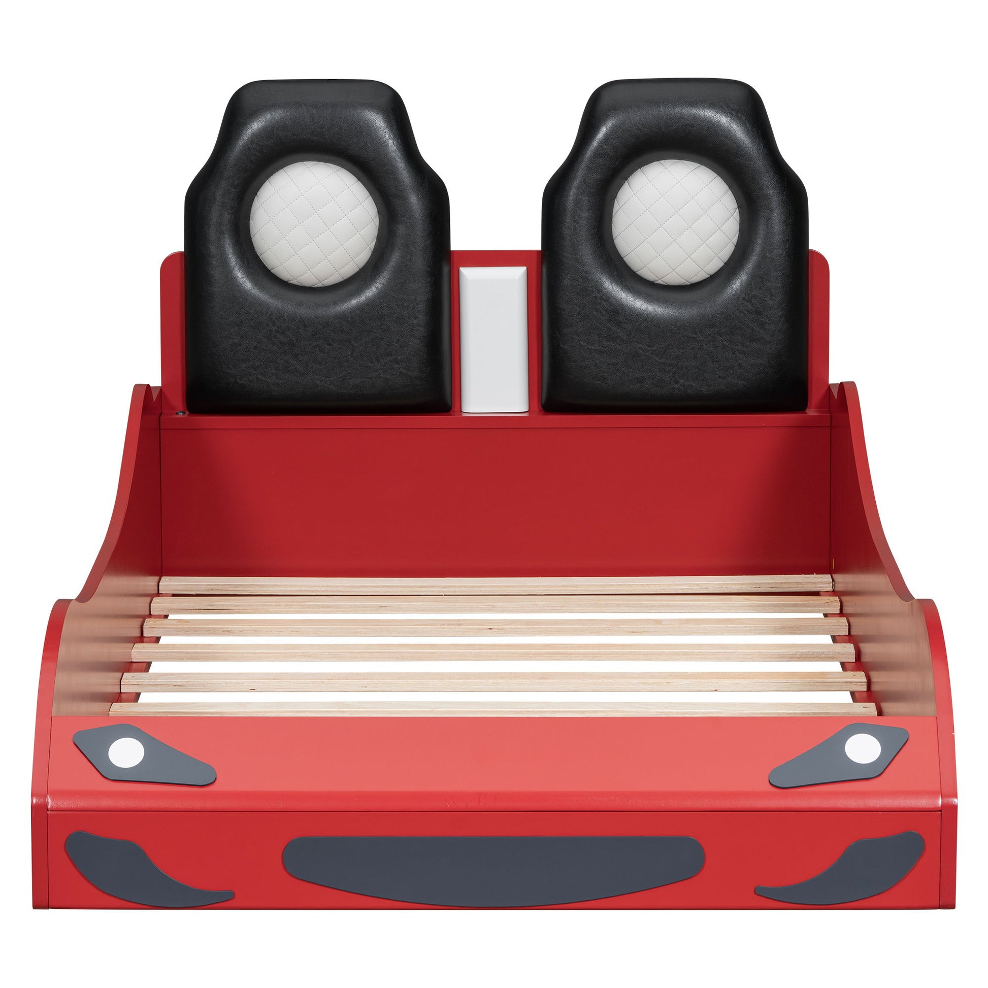 Race Car Shaped Twin Platform Bed With LED Lighting And Upholstered Backrest Construction - Red