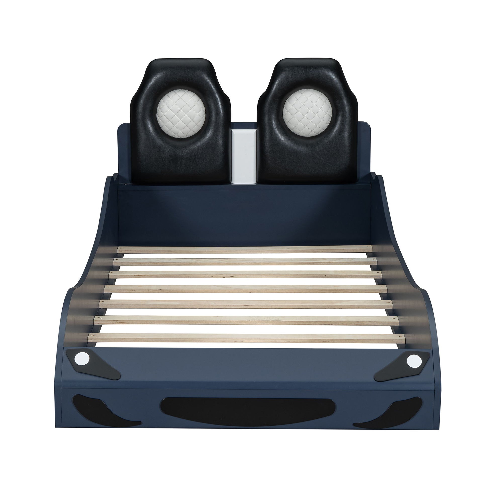 Race Car Shaped Platform Bed With LED And Upholstered Backrest In